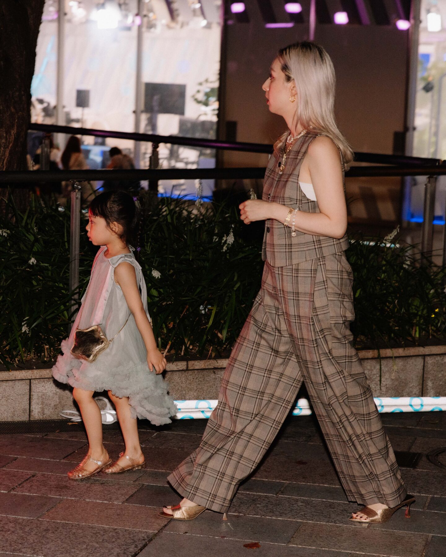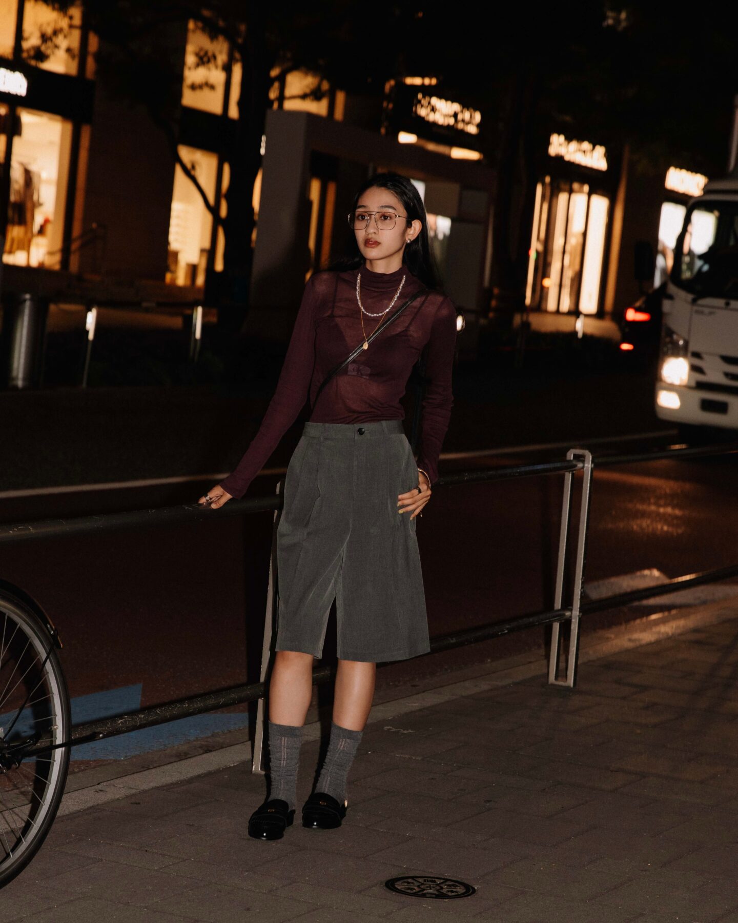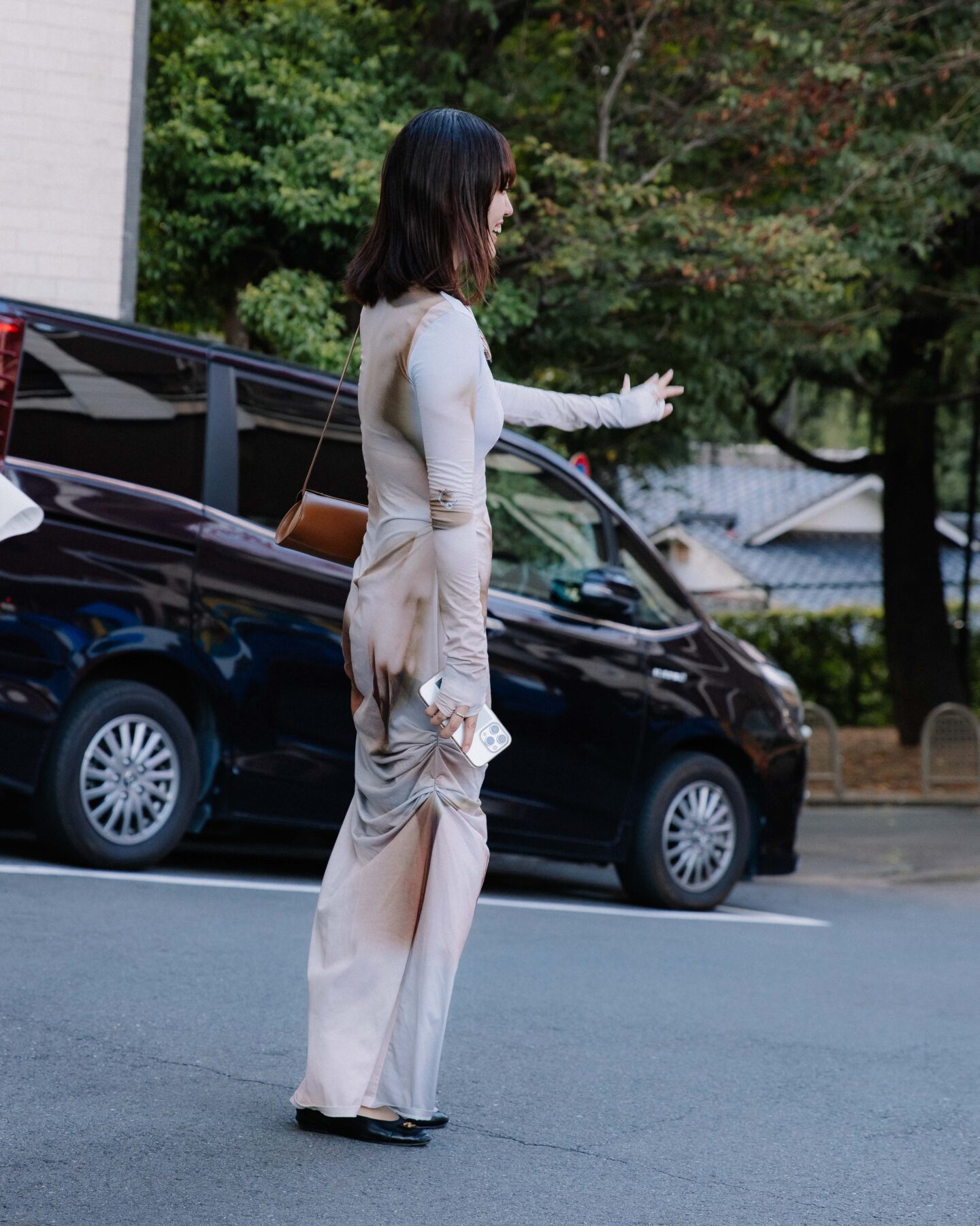 東京街頭最具辨識度的造型語言,來自對層次感造型的精準掌握!時尚達人善用寬鬆外套、緊身上衣等單品交錯組合,配搭不對稱裙款或褲裝,營造豐富而不凌亂的輪廓感。這種多層次穿搭,正是東京街拍的核心精神——將日常單品重組成具實驗性的時尚宣言。