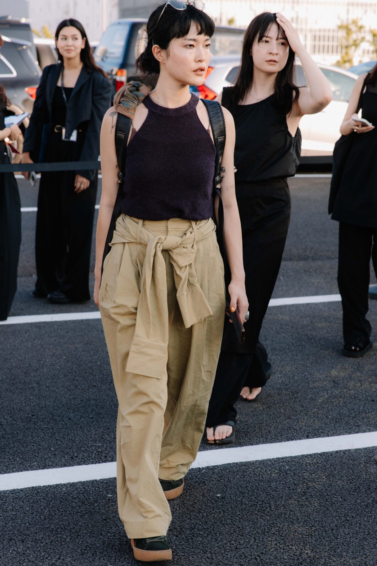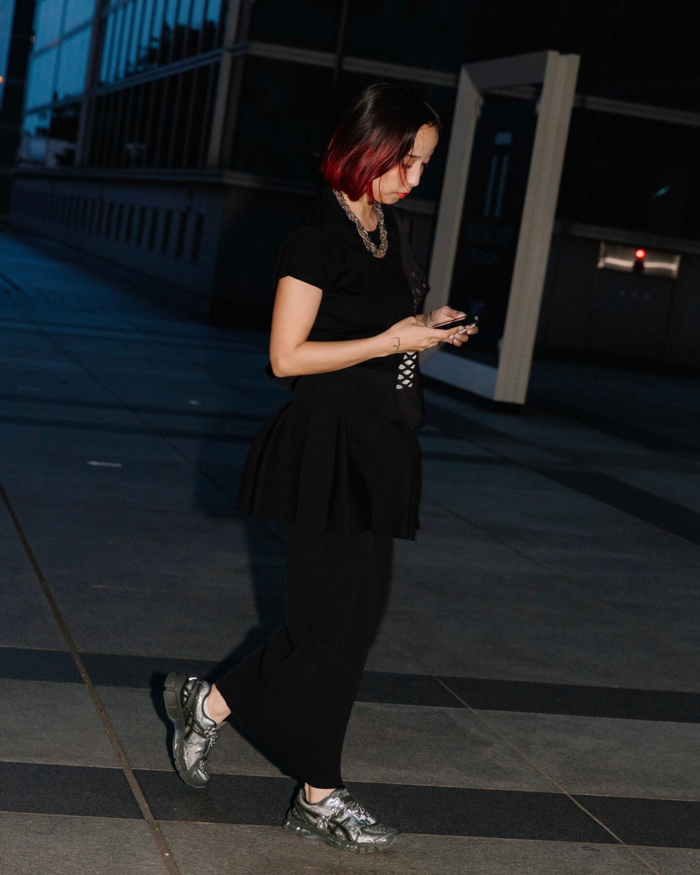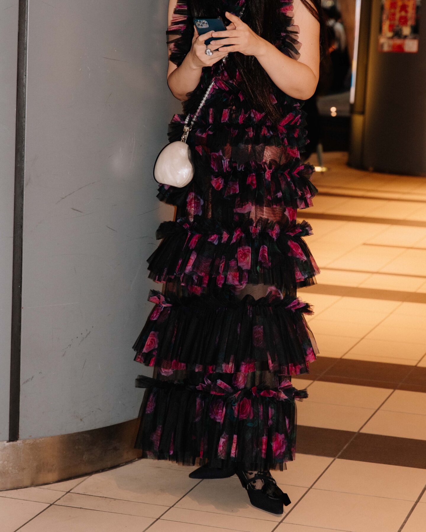 東京街頭最具辨識度的造型語言,來自對層次感造型的精準掌握!時尚達人善用寬鬆外套、緊身上衣等單品交錯組合,配搭不對稱裙款或褲裝,營造豐富而不凌亂的輪廓感。這種多層次穿搭,正是東京街拍的核心精神——將日常單品重組成具實驗性的時尚宣言。