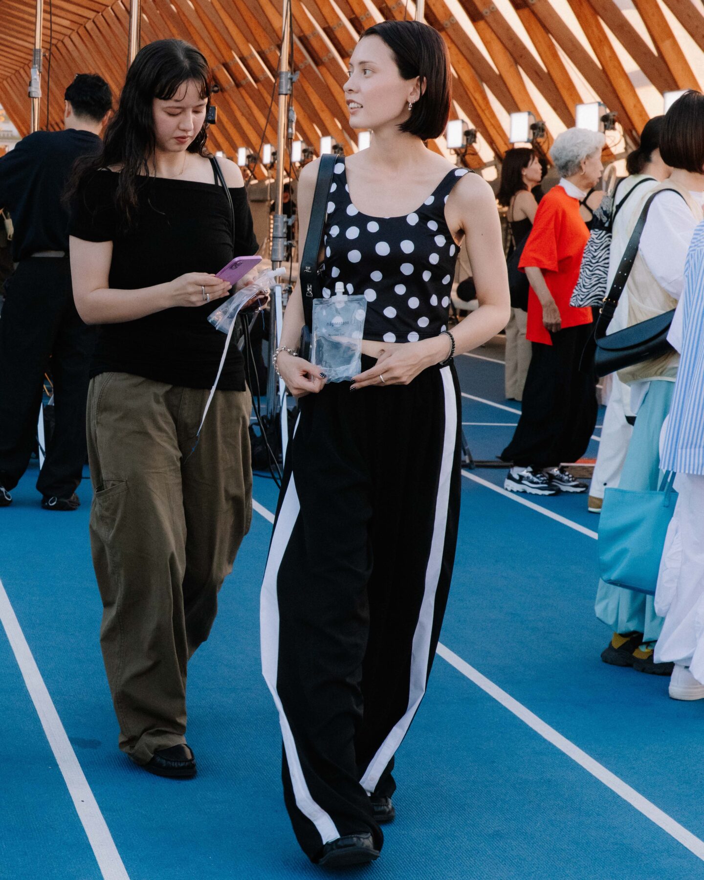 波點元素儼然佔據本季東京街頭,呈現夢幻優雅的風格。從波點連身裙,到簡潔俐落的波點背心,時尚達人們將這一經典設計元素演繹得更具個人色彩。
