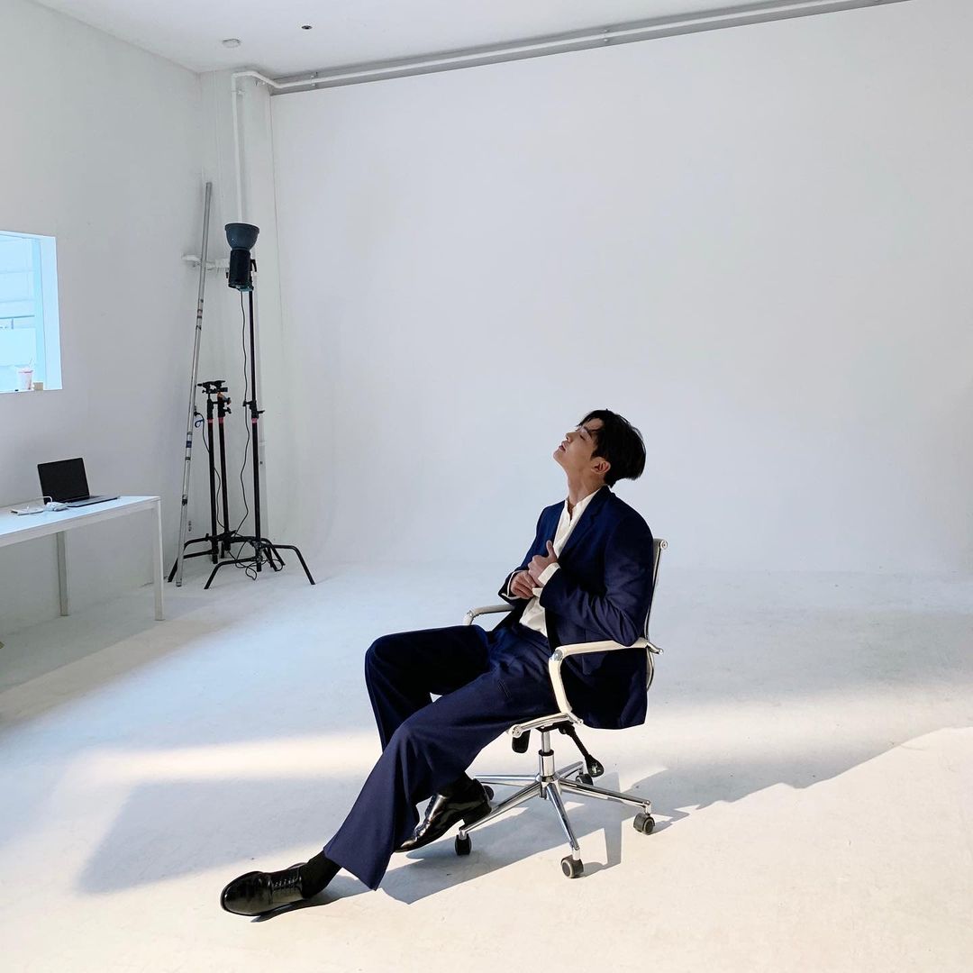 路雲對西裝的配色方案也是有自己的獨特見解,他選用深藍色西裝外套配搭白色襯衫,利用白色襯衫中和了西裝的暗沉,給人以乾淨清新的氛圍。