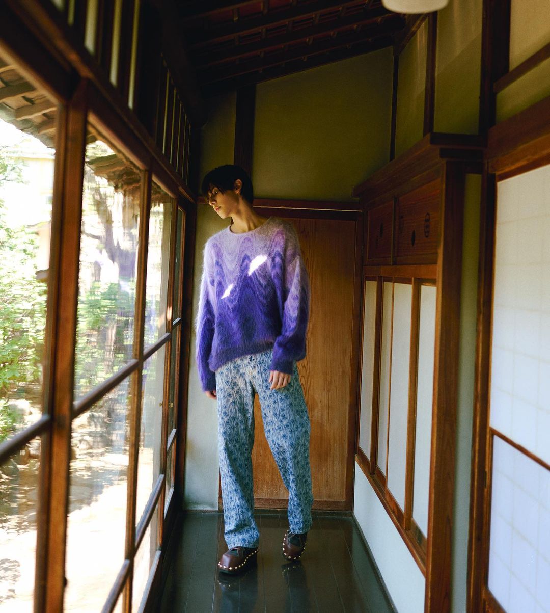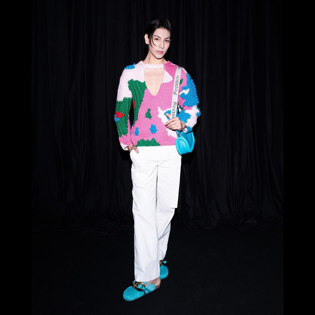 Raul對於毛衣的選擇有自己獨有的品味,鏤空設計、油畫元素、明亮色彩等都是Raul的最愛,他充分利用衣物的質感和色調,展露親和力和反差感,並透過精緻單品和妝造,達到舒適和吸睛的平衡。始終走在時尚前沿的Raul,拒絕無聊穿搭,會選擇油畫感紫色毛衣和印花褲裝搭配,腳上穿著啡色皮鞋,儘管看似「要素過多」的組合,但在Raul的詮釋下竟然不顯累贅,十分考驗搭配功力。