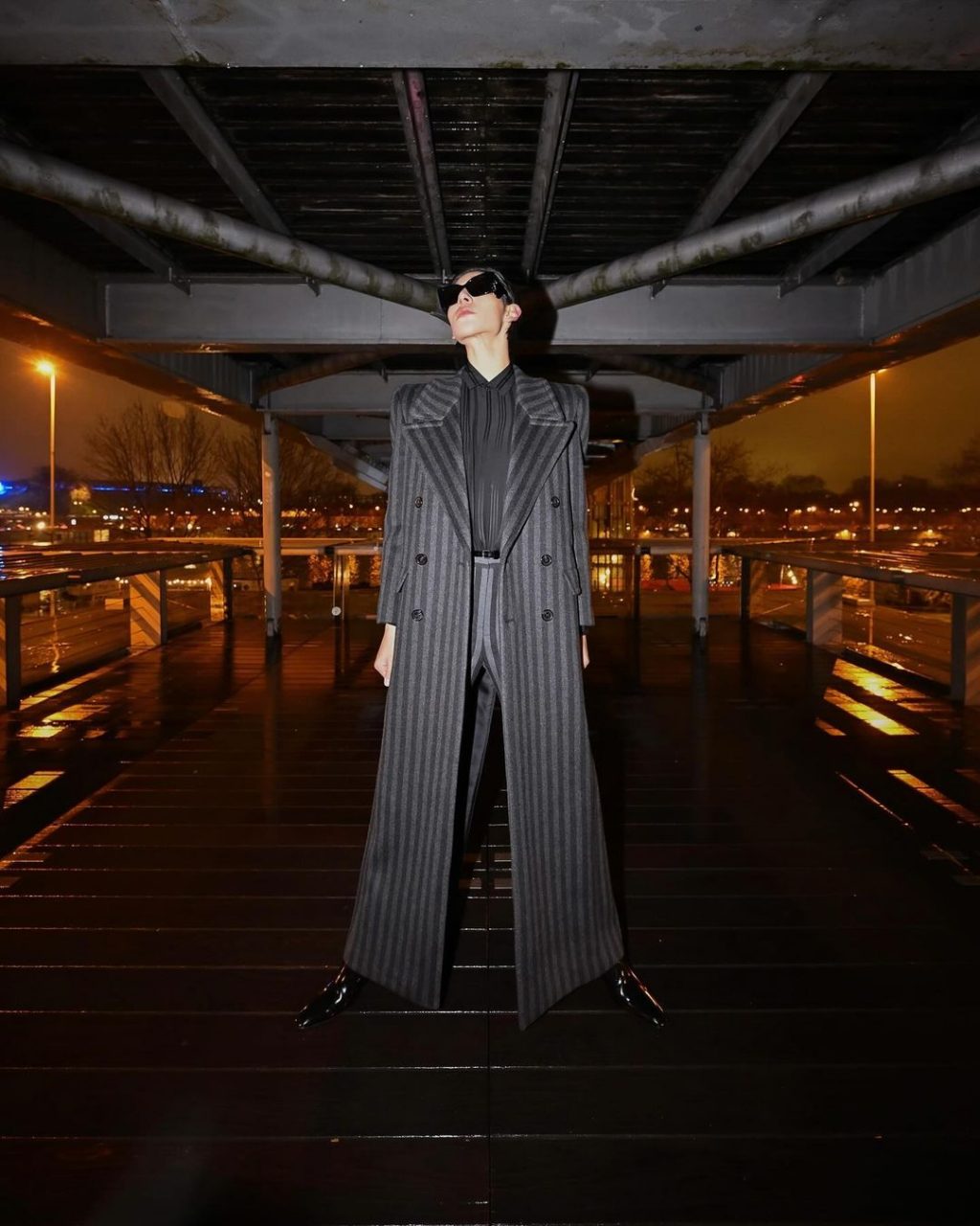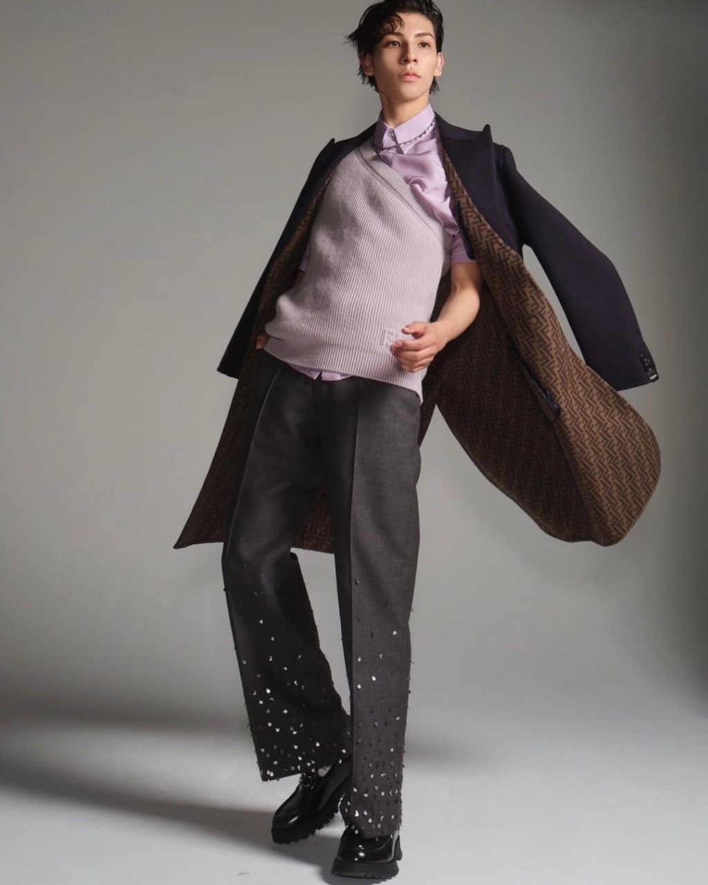 「天生衣架子」身材的Raul在駕馭長款大衣方面自然沒有難度,偏瘦的身材與白皙的膚色,令他盡顯禁慾氣息。在演繹墊肩大衣時,他會選擇暗黑系服裝這樣能夠更好的凸顯個人風格。而在穿著格紋大衣時,他會選擇寬鬆的版型,再搭配休閒的藍色牛仔褲和Gucci麂皮材質皮鞋,營造慵懶隨性的氛圍。Raul的前衛造型永遠給人驚喜,在演繹極具實驗性的造型時,他會將各種單品混合搭配,給人意想不到的視覺效果,他用斜紋大衣內襯同材質上衣,再用襯衫增添層次感,而下裝竟然以超長過膝靴作為搭配,打造男裝「No Pants」造型。