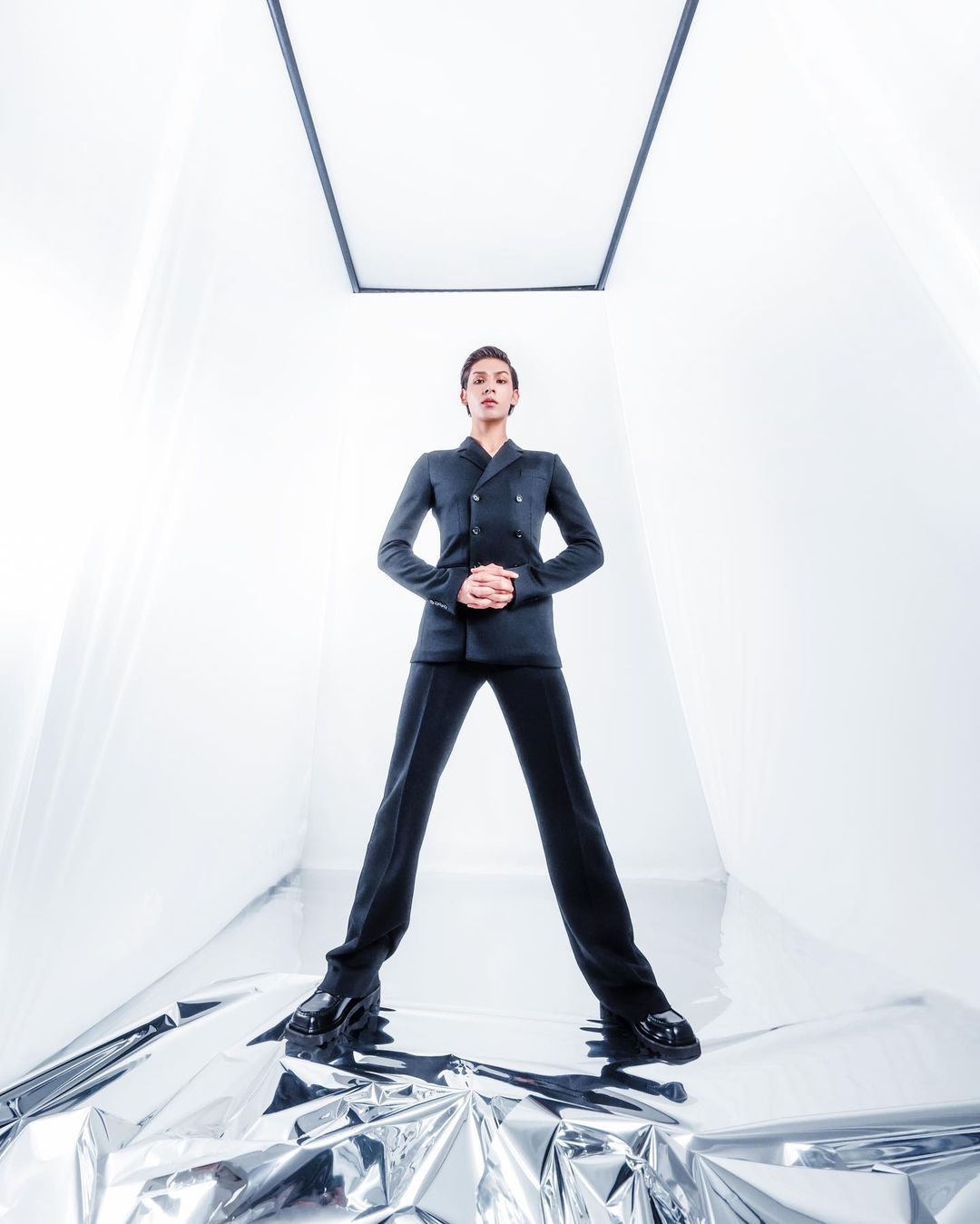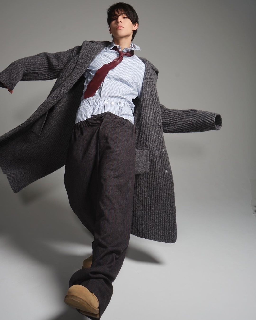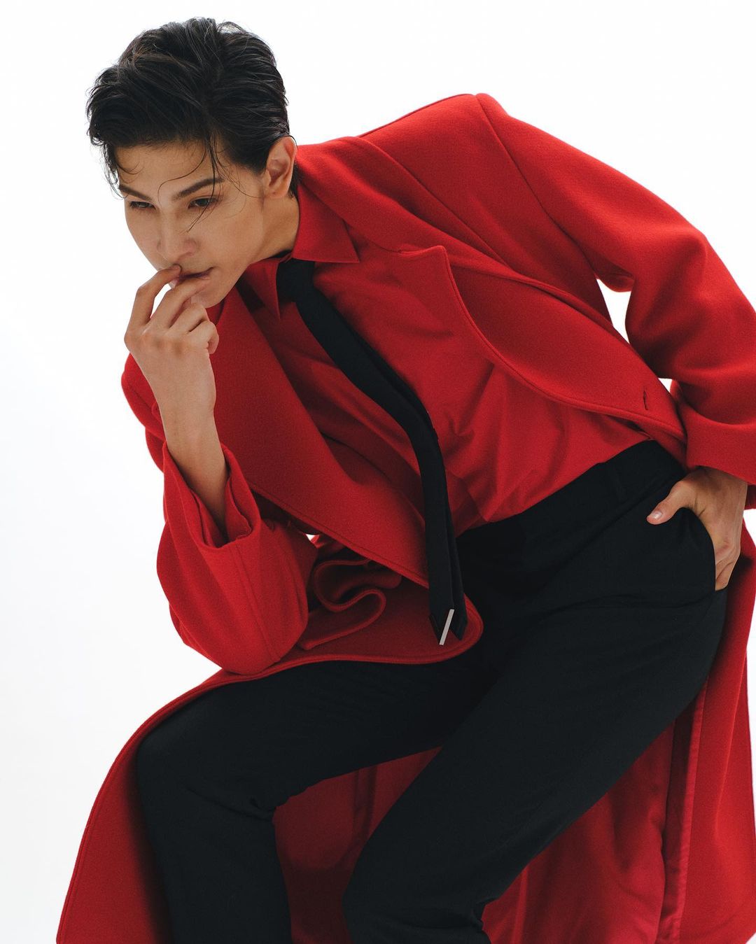 「天生衣架子」身材的Raul在駕馭長款大衣方面自然沒有難度,偏瘦的身材與白皙的膚色,令他盡顯禁慾氣息。在演繹墊肩大衣時,他會選擇暗黑系服裝這樣能夠更好的凸顯個人風格。而在穿著格紋大衣時,他會選擇寬鬆的版型,再搭配休閒的藍色牛仔褲和Gucci麂皮材質皮鞋,營造慵懶隨性的氛圍。Raul的前衛造型永遠給人驚喜,在演繹極具實驗性的造型時,他會將各種單品混合搭配,給人意想不到的視覺效果,他用斜紋大衣內襯同材質上衣,再用襯衫增添層次感,而下裝竟然以超長過膝靴作為搭配,打造男裝「No Pants」造型。