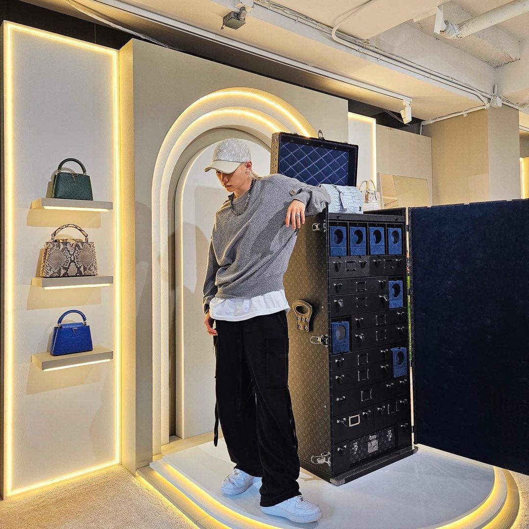 出席「LV DREAM」展覽怎麼穿?Felix以一身黑色型格西裝現身展覽,自在散發獨具一格的氣場,手拿Louis Vuitton Side Trunk手袋,打造幹練精緻的造型。