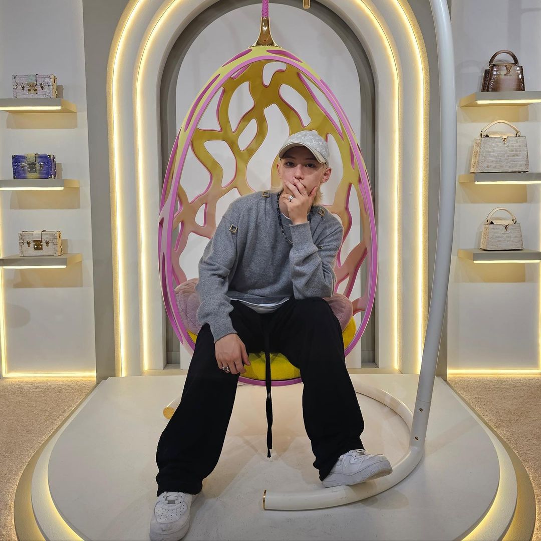Felix為出席2023 MTV Video Music Awards進行試衣,他則呈現活力又別具型格的一面,灰色圓領衛衣內搭白色T恤,腳上的穿著Nike Air Force 1白色波鞋,提高造型層次感,飾有Monogram圖案的項鍊、耳環,和Cap帽,升級視覺感官,喚醒瀟灑主張。