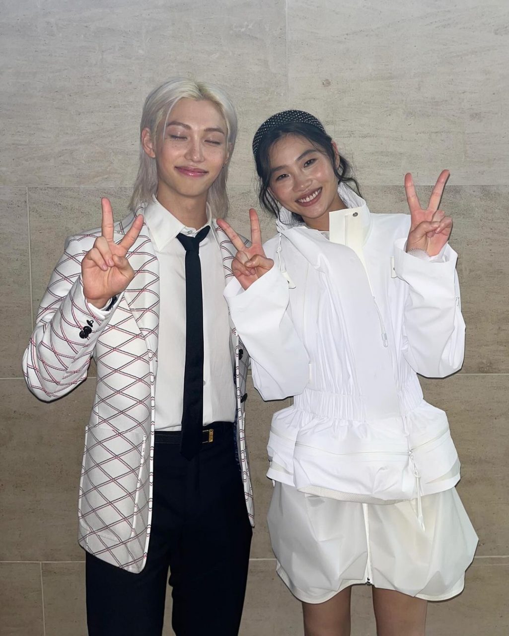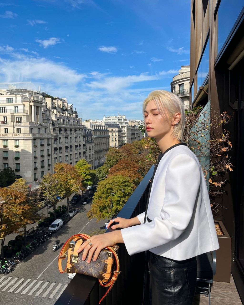 在2023 MTV Video Music Awards的另一套舞台穿搭中,Felix則上身由Louis Vuitton女裝設計總監Nicolas Ghesquière設計的服裝,他將服飾明顯的性別特徵消除,高領螺紋針織上衣,緞面修身西裝,配合一頭金髮,宛若一位霸氣冷冽的貴公子。
