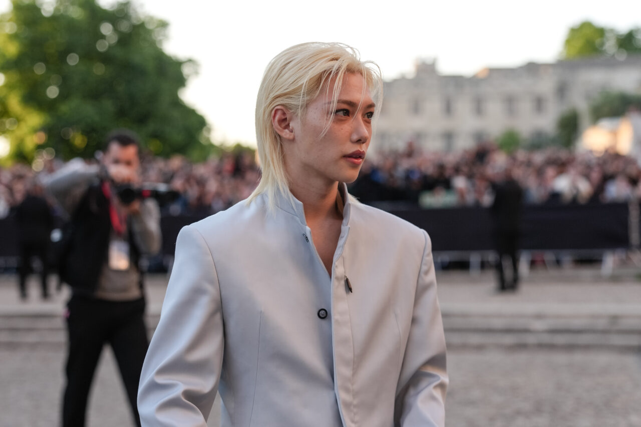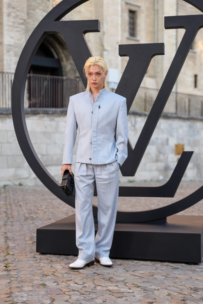 作為Louis Vuitton的寵兒,Felix受邀出席由Nicolas Ghesquière設計的Louis Vuitton 2024春夏系列時裝展,他以黑白色系亮相,身穿2024早春系列改款西裝,配搭黑色皮褲和皮靴,用Monogram印花手袋為整套造型更添精緻感。