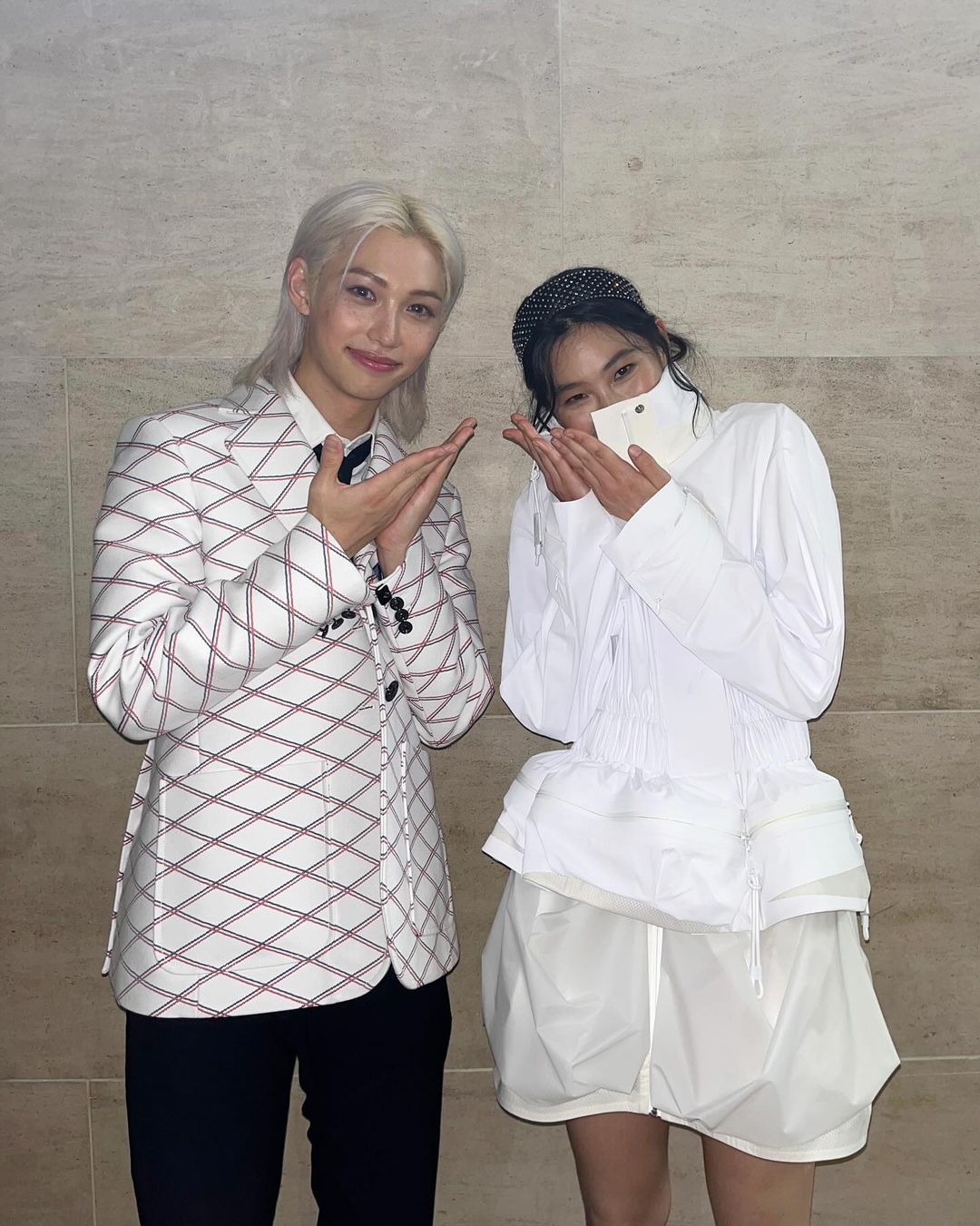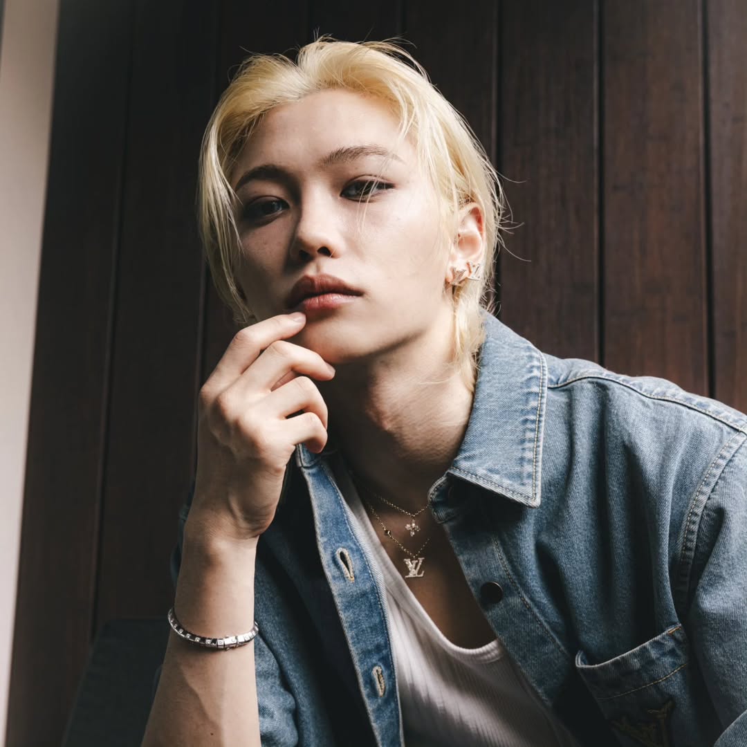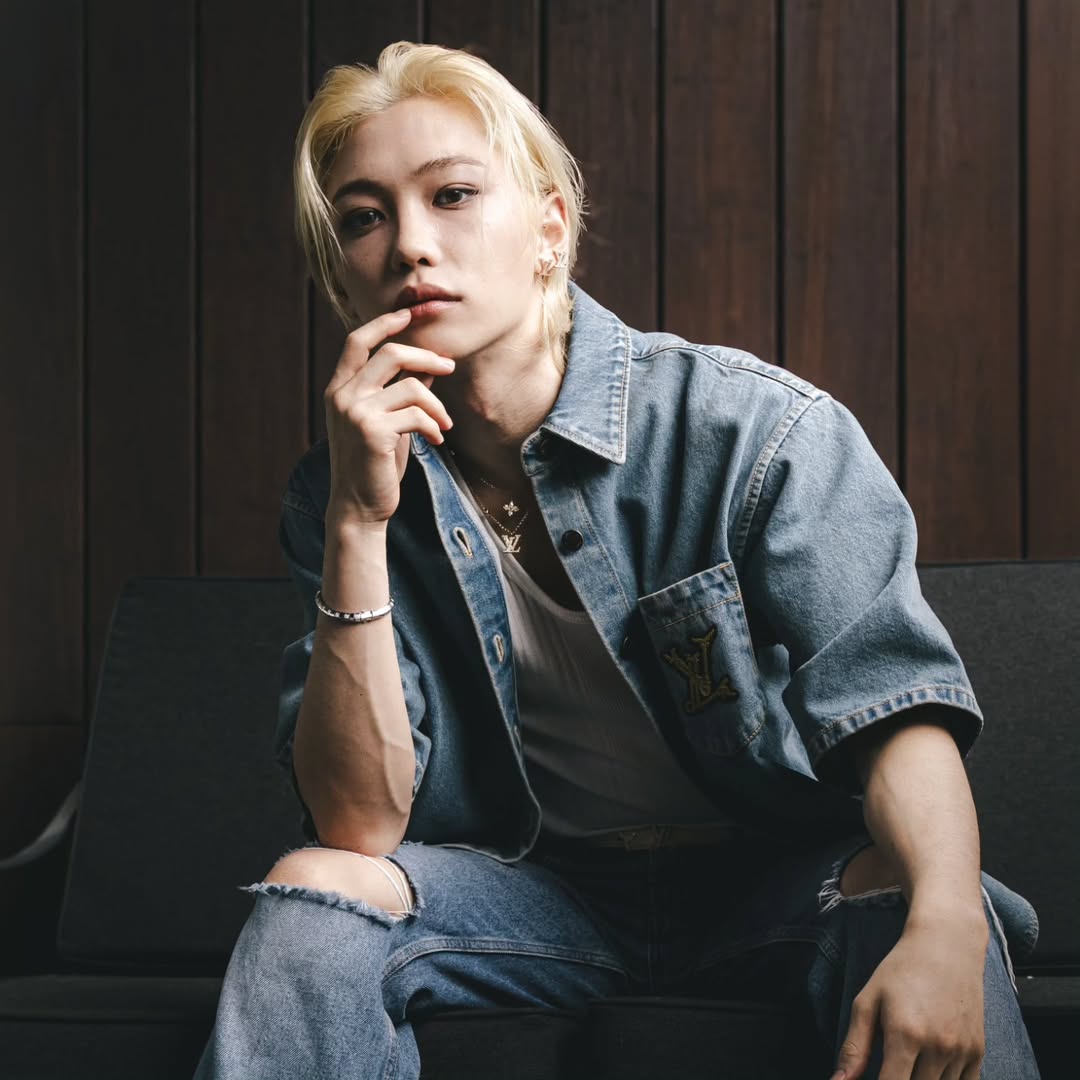 在2023 MTV Video Music Awards的另一套舞台穿搭中,Felix則上身由Louis Vuitton女裝設計總監Nicolas Ghesquière設計的服裝,他將服飾明顯的性別特徵消除,高領螺紋針織上衣,緞面修身西裝,配合一頭金髮,宛若一位霸氣冷冽的貴公子。