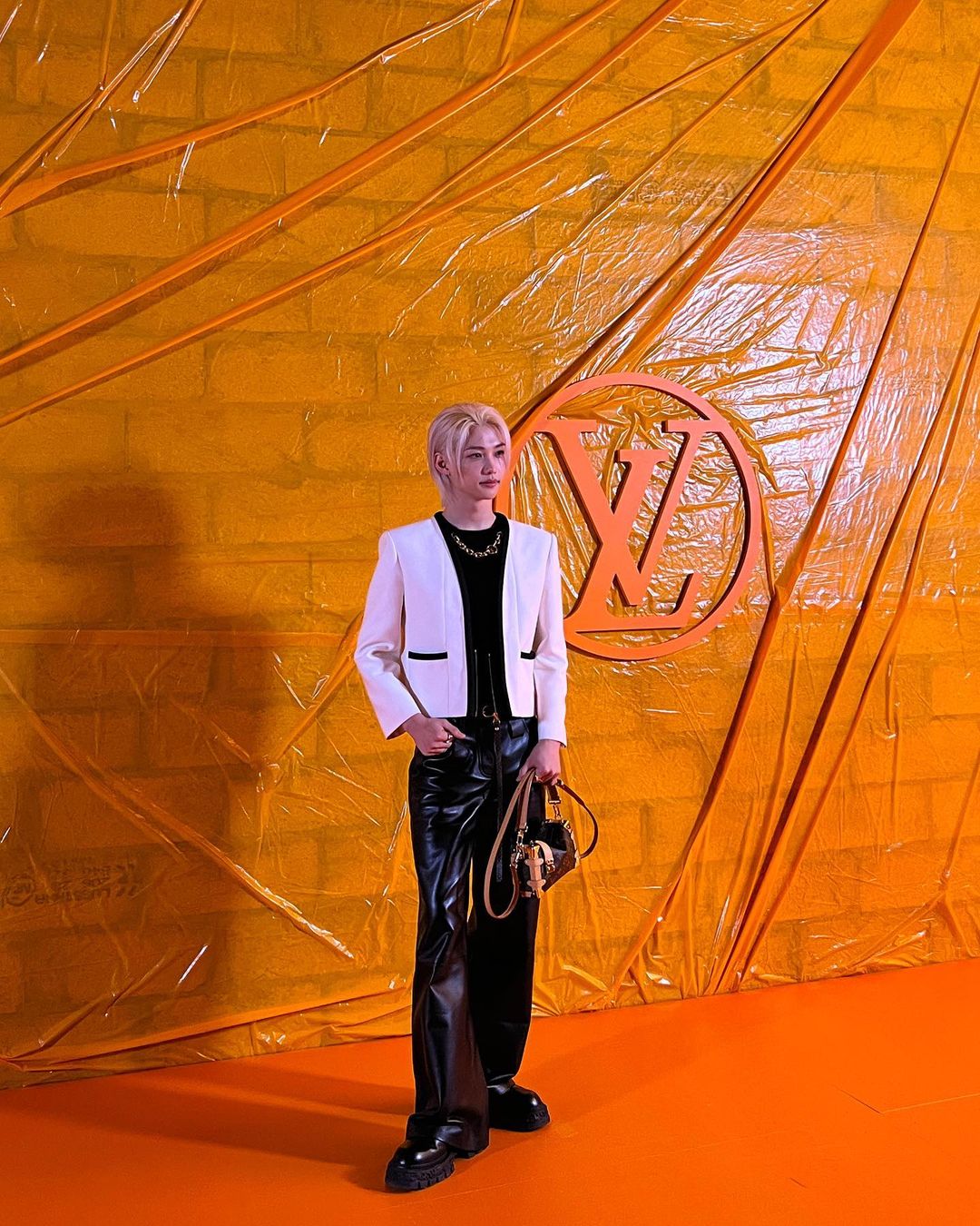 作為Louis Vuitton的寵兒,Felix受邀出席由Nicolas Ghesquière設計的Louis Vuitton 2024春夏系列時裝展,他以黑白色系亮相,身穿2024早春系列改款西裝,配搭黑色皮褲和皮靴,用Monogram印花手袋為整套造型更添精緻感。