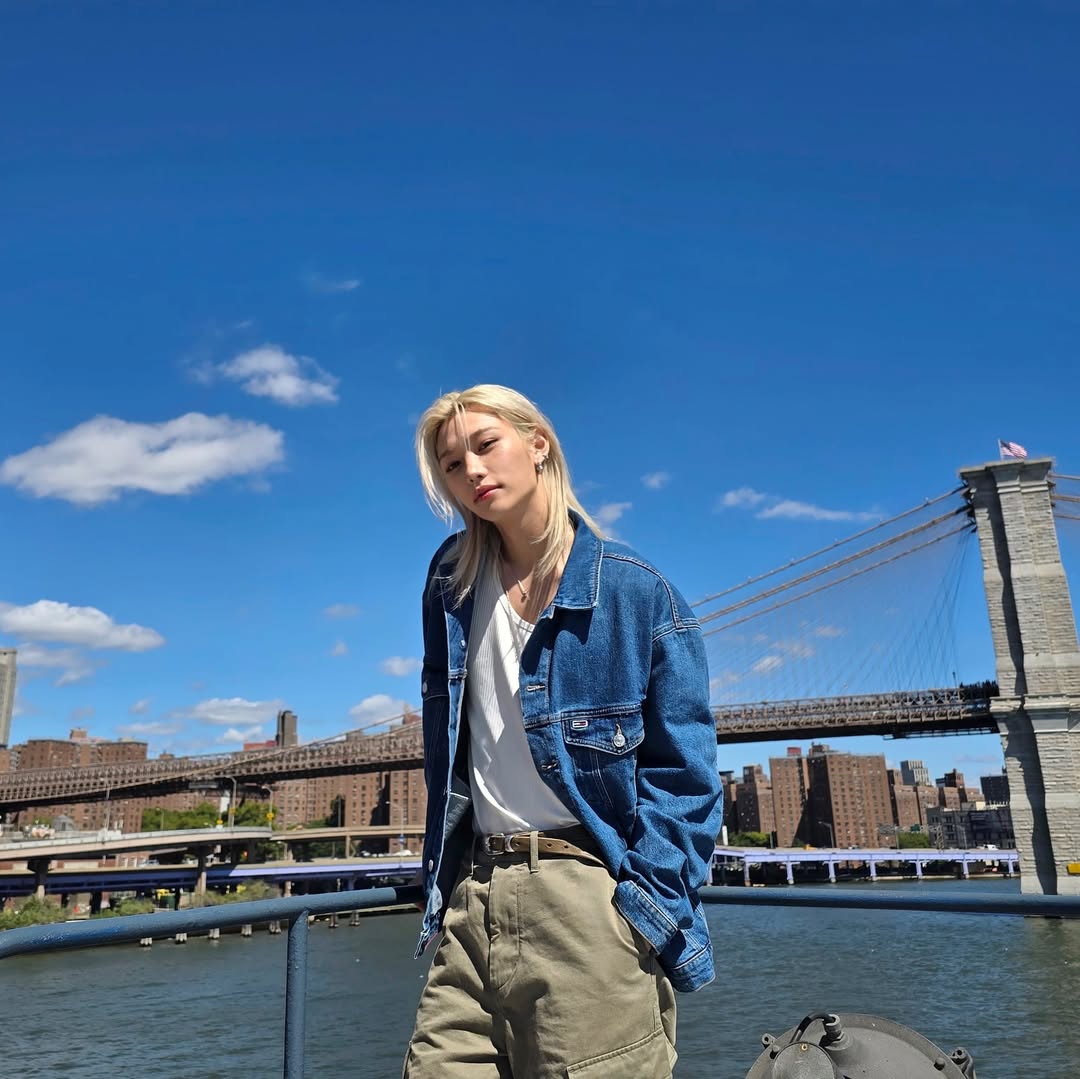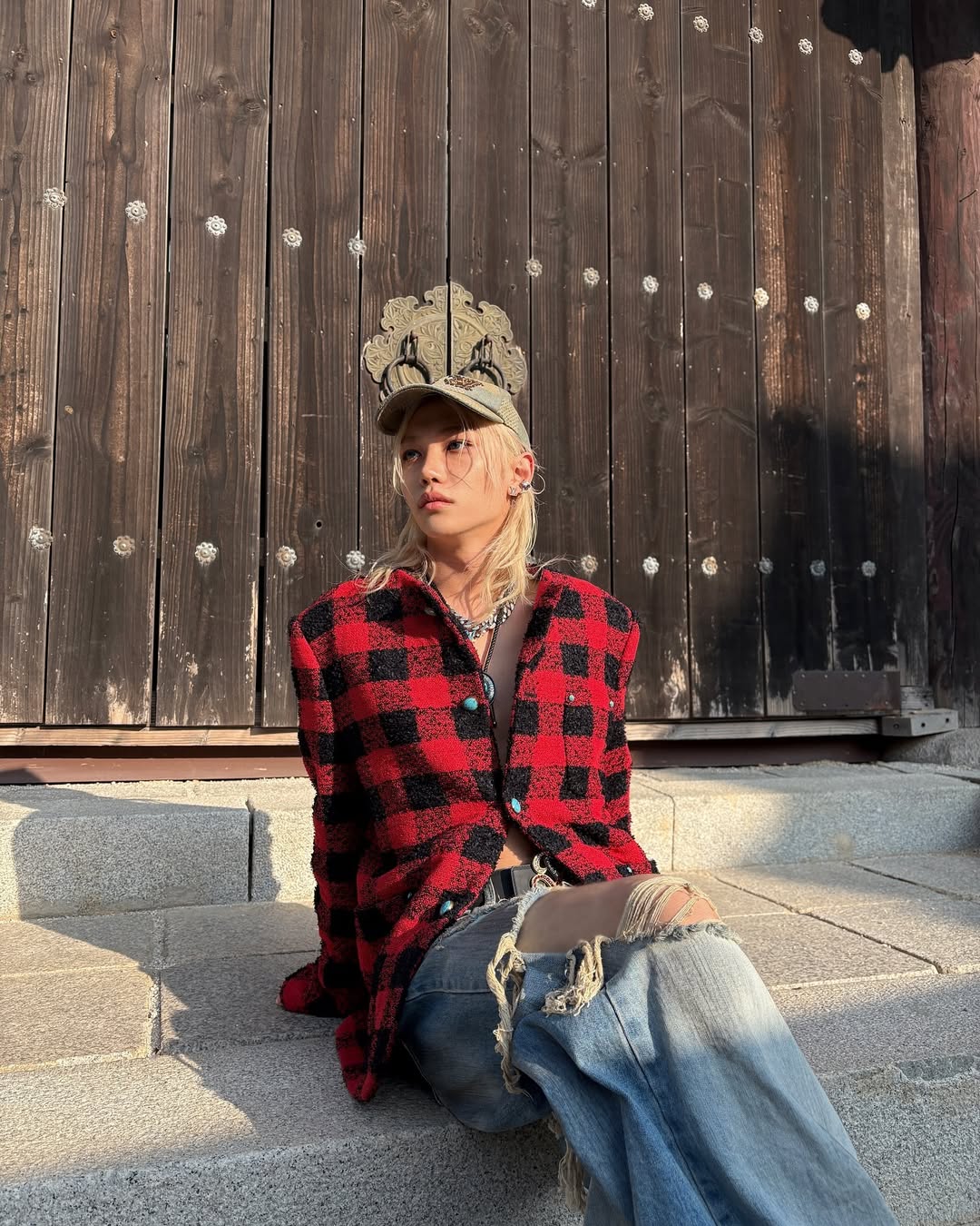 Felix與Stray Kids隊友亮相首爾現代百貨公司的Tommy Hilfiger新店開幕式現場時,他化身校園風男孩,紅黑色格紋棒球服配搭卡其色休閒褲,腳上穿著黑色切爾西短靴,整體造型一展獨自屬於Felix的青春陽光活力。