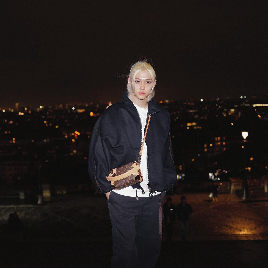 當他漫步於巴黎街頭時,則身穿Louis Vuitton水洗牛仔襯衫,配搭同品牌Goussin MM黑色鏈條手袋,品牌經典Monogram均以壓紋工藝呈現,盡顯精湛工藝的同時,也詮釋了低調文藝的奢華。