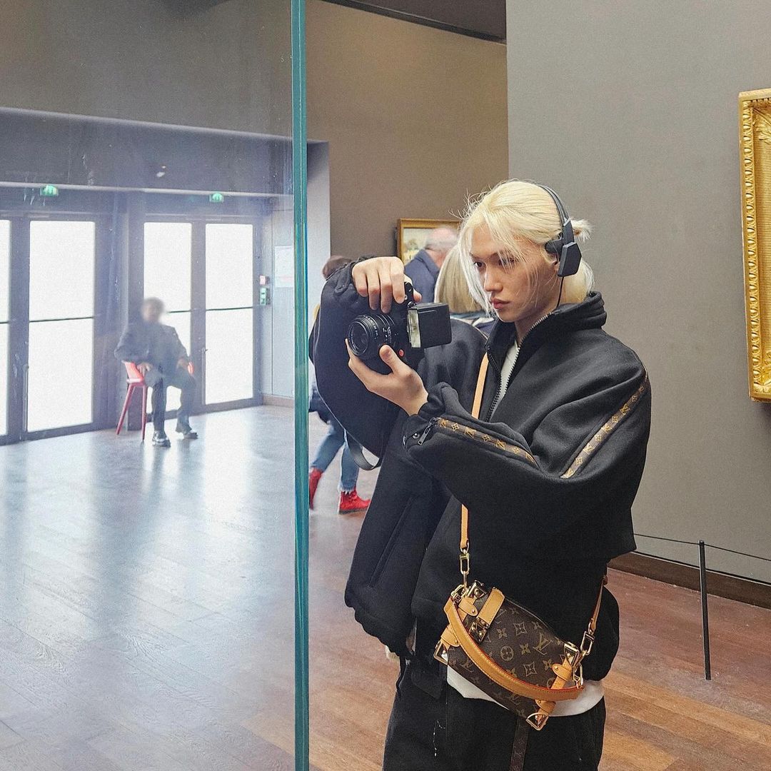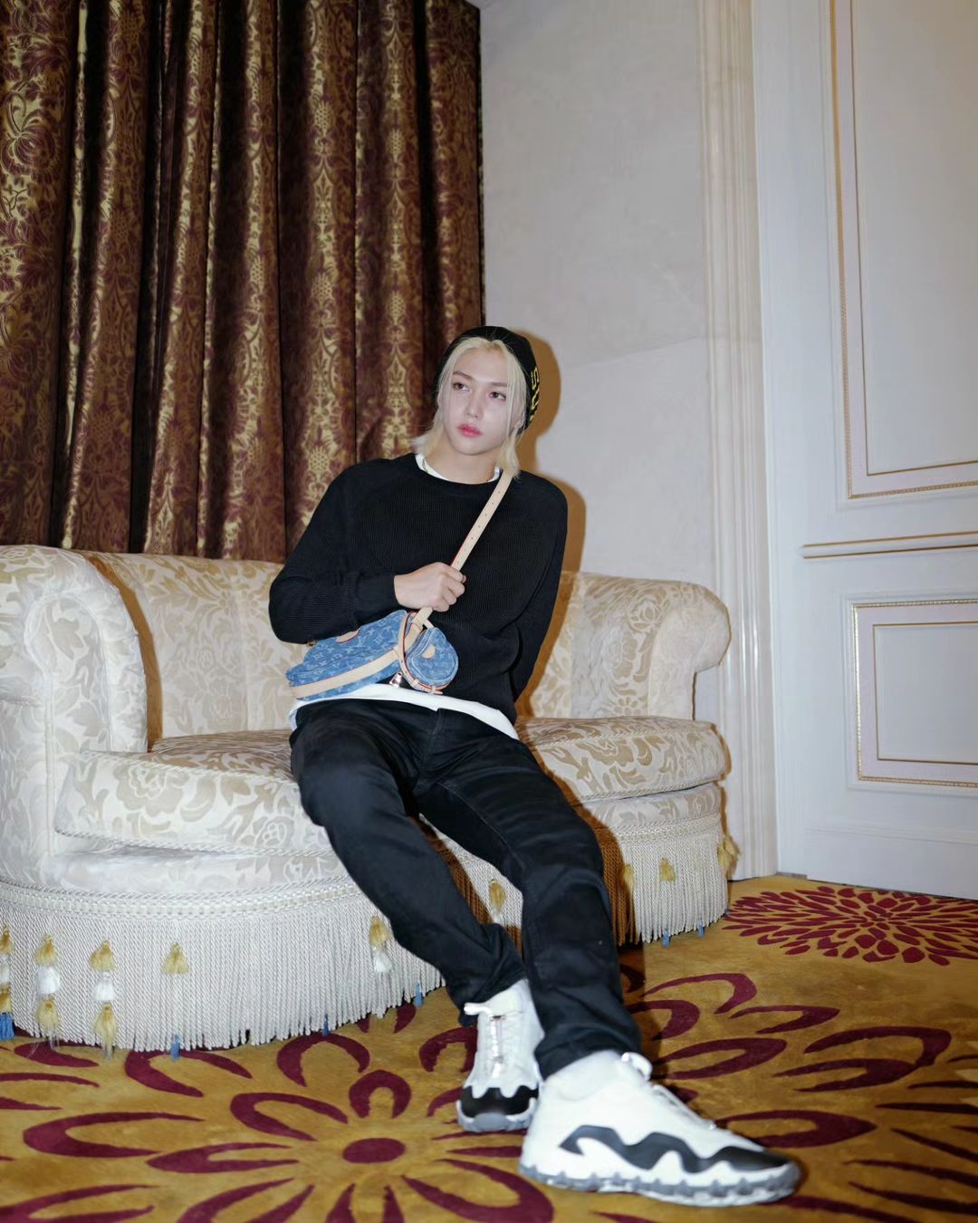 Felix在個人Instagram的初次更新中,將摩登風範展現得淋漓盡致,身穿Louis Vuitton黑色Monogram皮革外套和工裝牛仔褲,配搭同品牌鎖扣金色項鍊,與腰帶上的金色Logo相得益彰,身上的Camera Box手袋更是成為造型亮點。