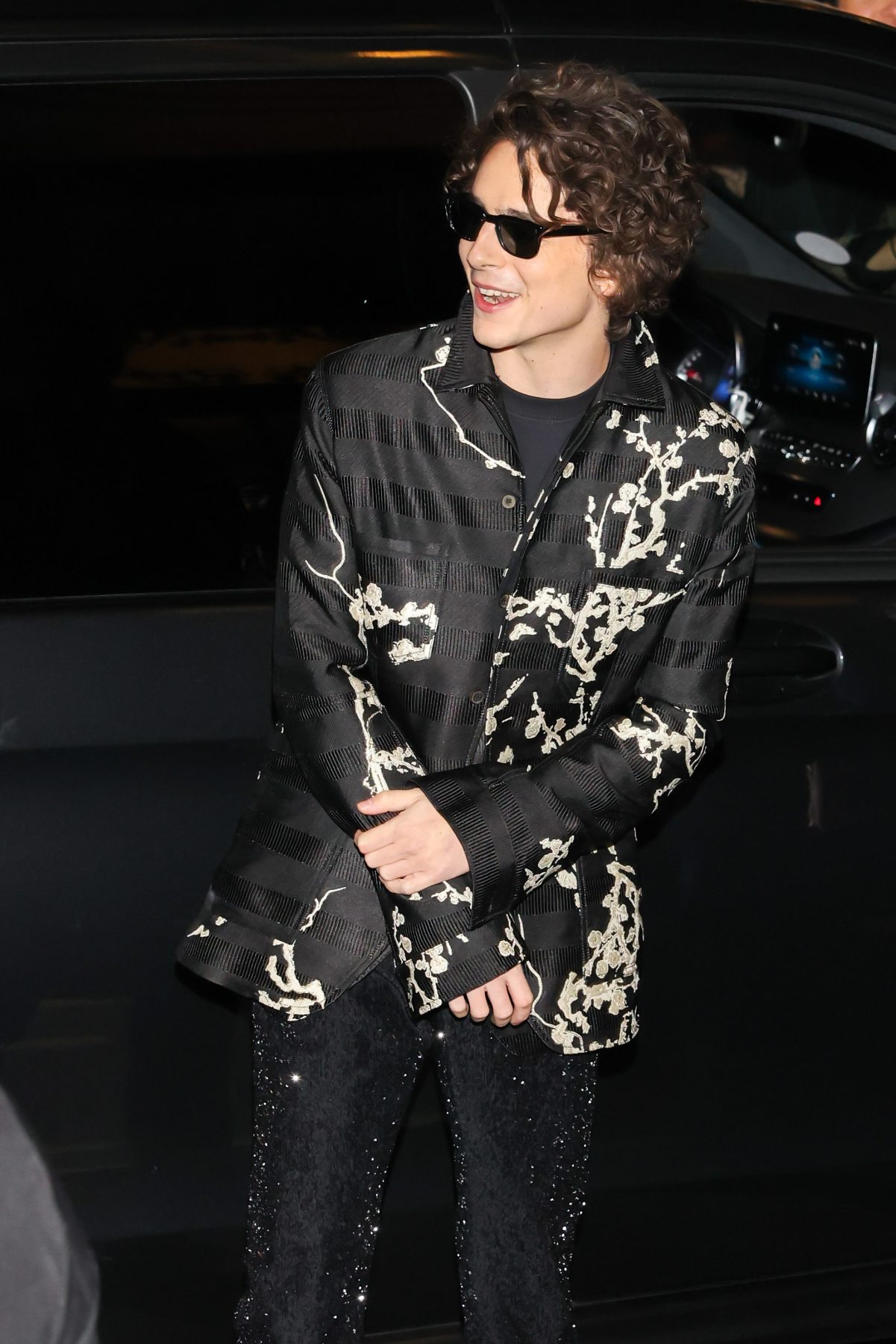 PARIS, FRANCE - JANUARY 25: Timothée Chalamet is seen arriving at the Jean-Paul Gaultier show during Paris Fashion Week Haute Couture Spring Summer 2023 on January 25, 2023 in Paris, France. (Photo by Arnold Jerocki/Getty Images)