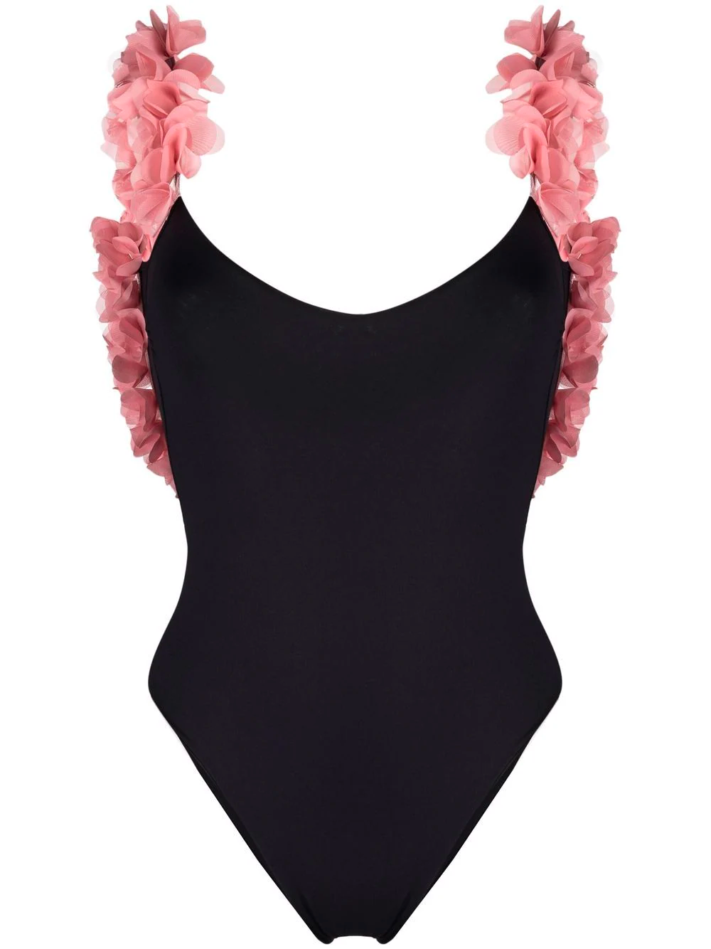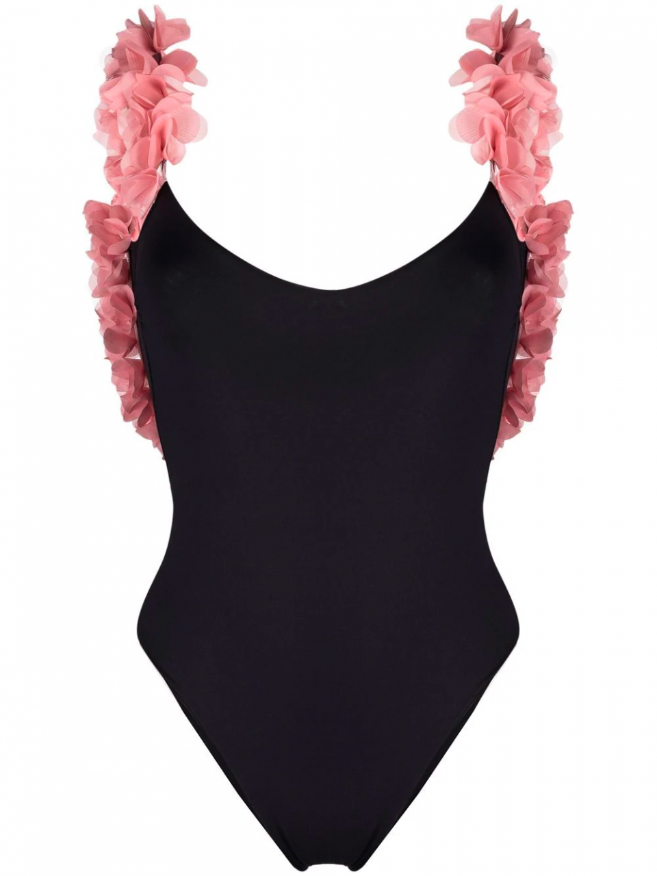 同樣跟花有關的泳衣設計是立體花卉綴飾,讓海灘造型增添浪漫焦點。當然,這一系列的泳衣設計偏向著重時尚度及觀賞性,實用性並非重點。