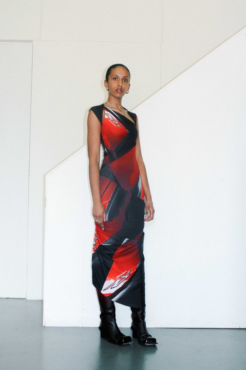 Hakin 在設計時的出發點是在她的東倫敦工作室的範圍內玩弄形狀。 「我通常將我的研究與人體模型上的3D實驗結合起來。懸垂是我最喜歡的部分,因為我喜歡這種觸覺元素。對我來說,時尚是關於為穿著者創造盔甲。我希望我的物品成為穿著者的一種延伸。」她強調說。