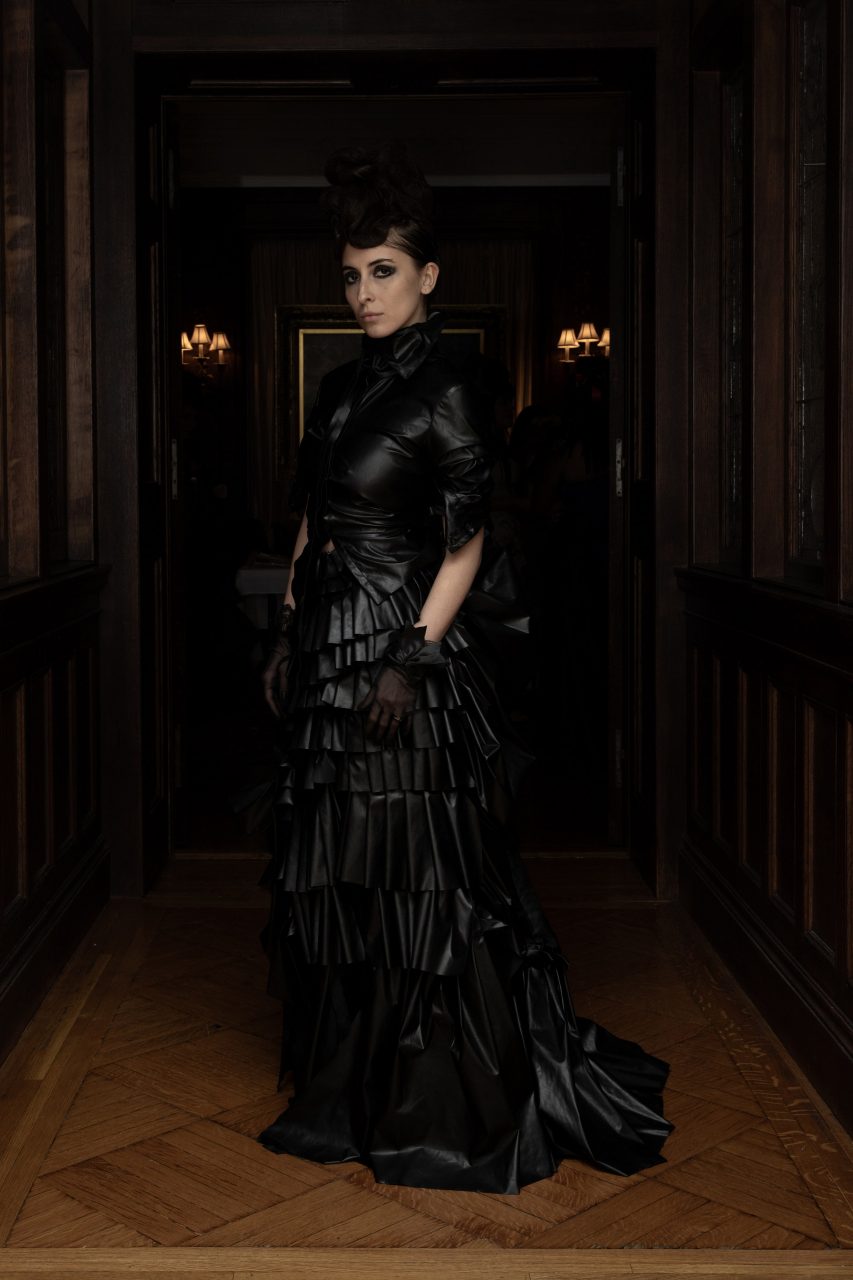 Taylor Swift在《Fortnight》MV穿著來自Unttld 2021秋冬系列的荷葉邊打蠟皮革襯衫,不禁讓人聯想到維多利亞時期喪服的音樂風格,黑色喪服在1819年至1901年維多利亞女王統治期間開始流行,與該品牌的設計師描述其設計「19世紀的幻想」相契合。