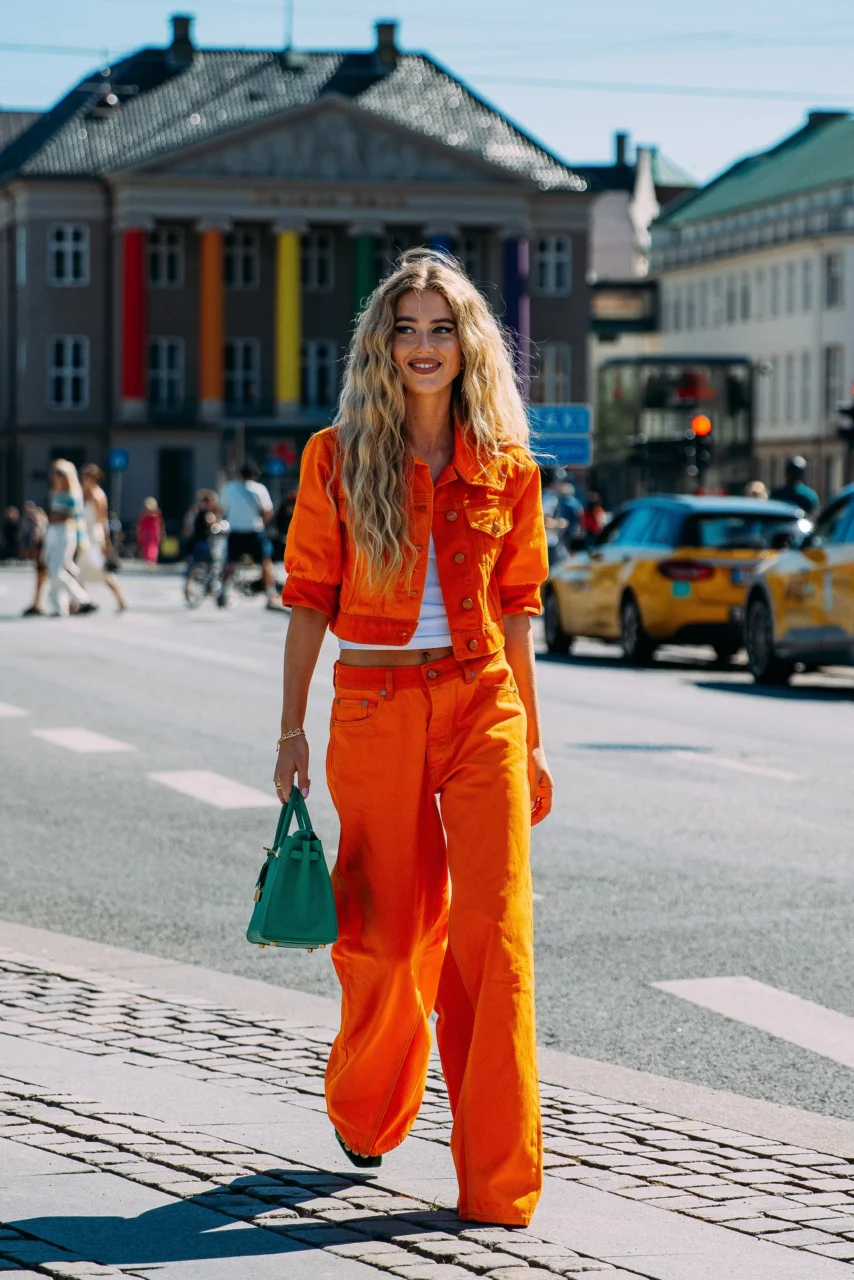 一套高飽和的橙色牛仔套裝,配上一個對比強烈的綠色手袋,張揚而大膽,彷彿將整個街頭變成了你的舞台。而若你偏愛突顯身材的穿搭,不妨嘗試一件貼身的橙色針織長裙,搭配明黃色手袋,雙重暖色調的搭配更讓人心情輕鬆愉悅,針織裙勾勒出優雅線條,手袋則注入幾分溫馨與童趣。
