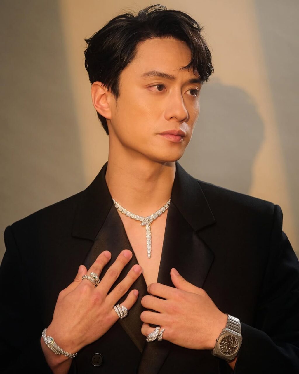 出席2025年香港電影頒獎禮時,劉俊謙穿上Bottega Veneta真空西裝,領片則用絲質材料,配上Bvlgari Serpenti Viper系列珠寶後,呈現大膽華麗的造型。