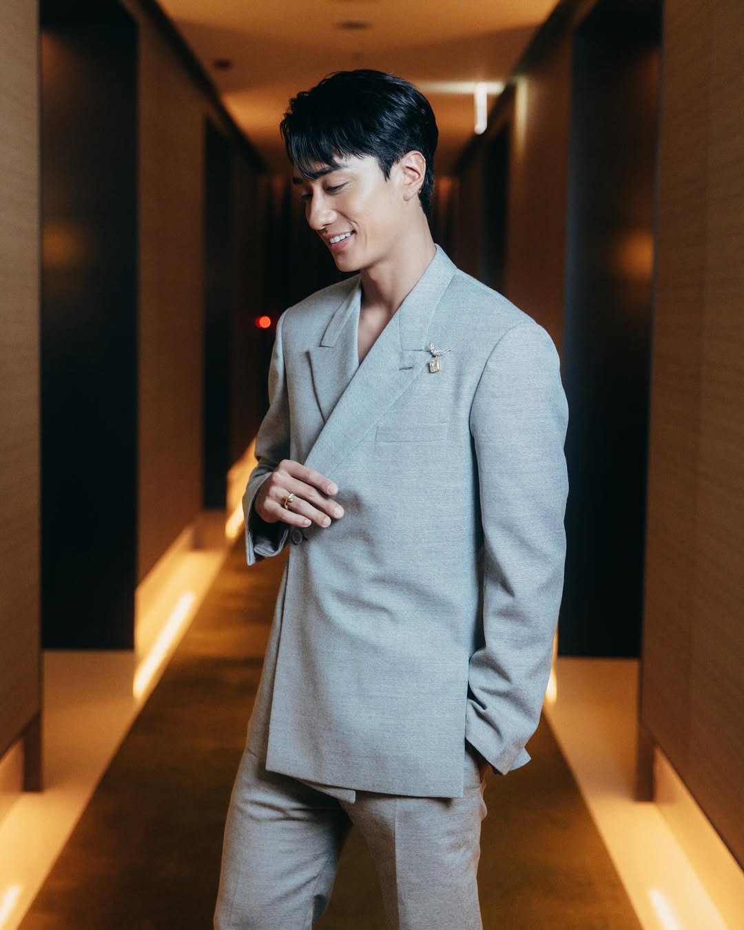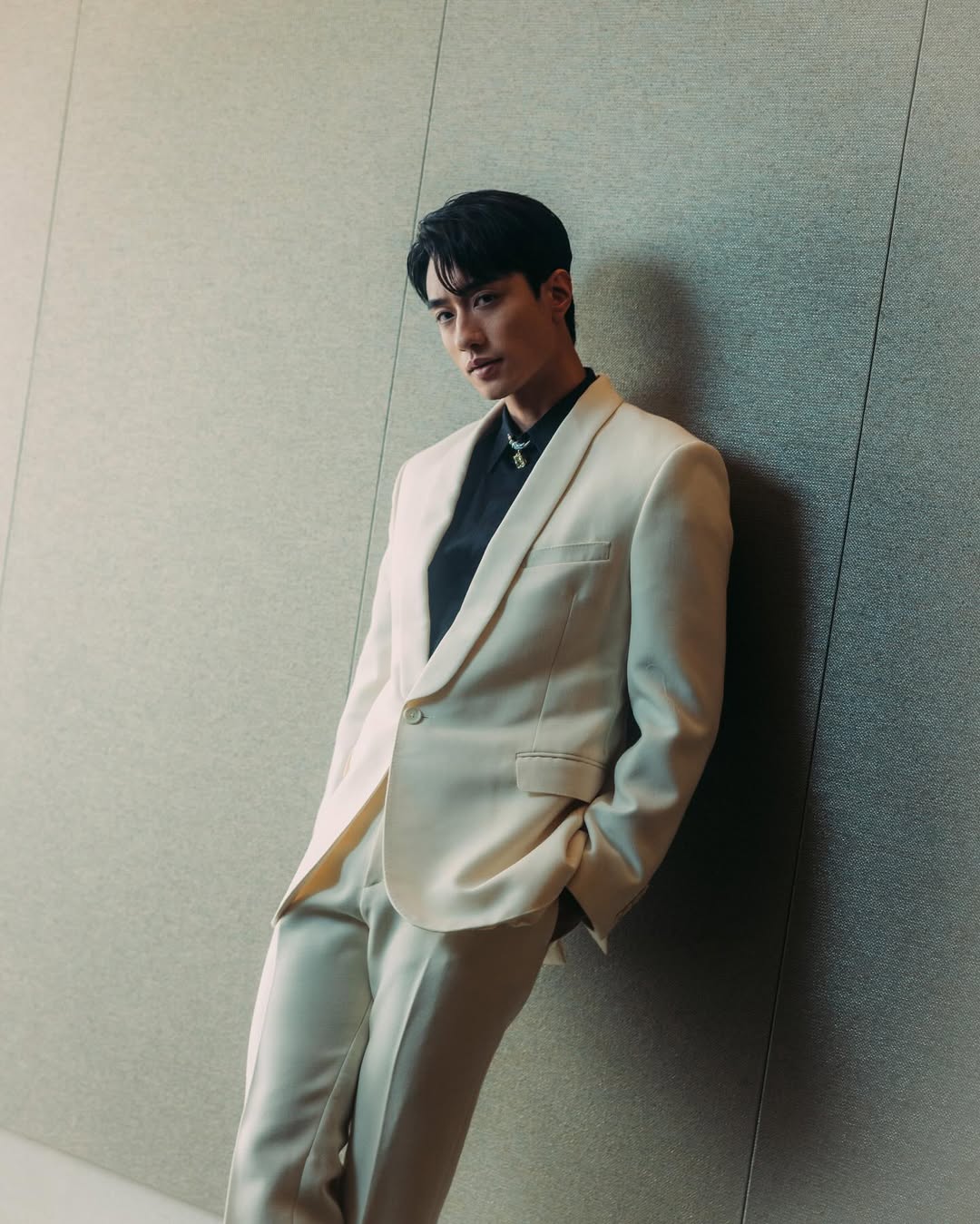 2024年10月的金鐘獎頒獎禮,劉俊謙再帶來2款造型,包括白色Celine西裝配黑色恤衫,還有淺灰色Dior羔羊毛斜裁門襟西裝,淺色系的選擇給人耳目一新的感覺。