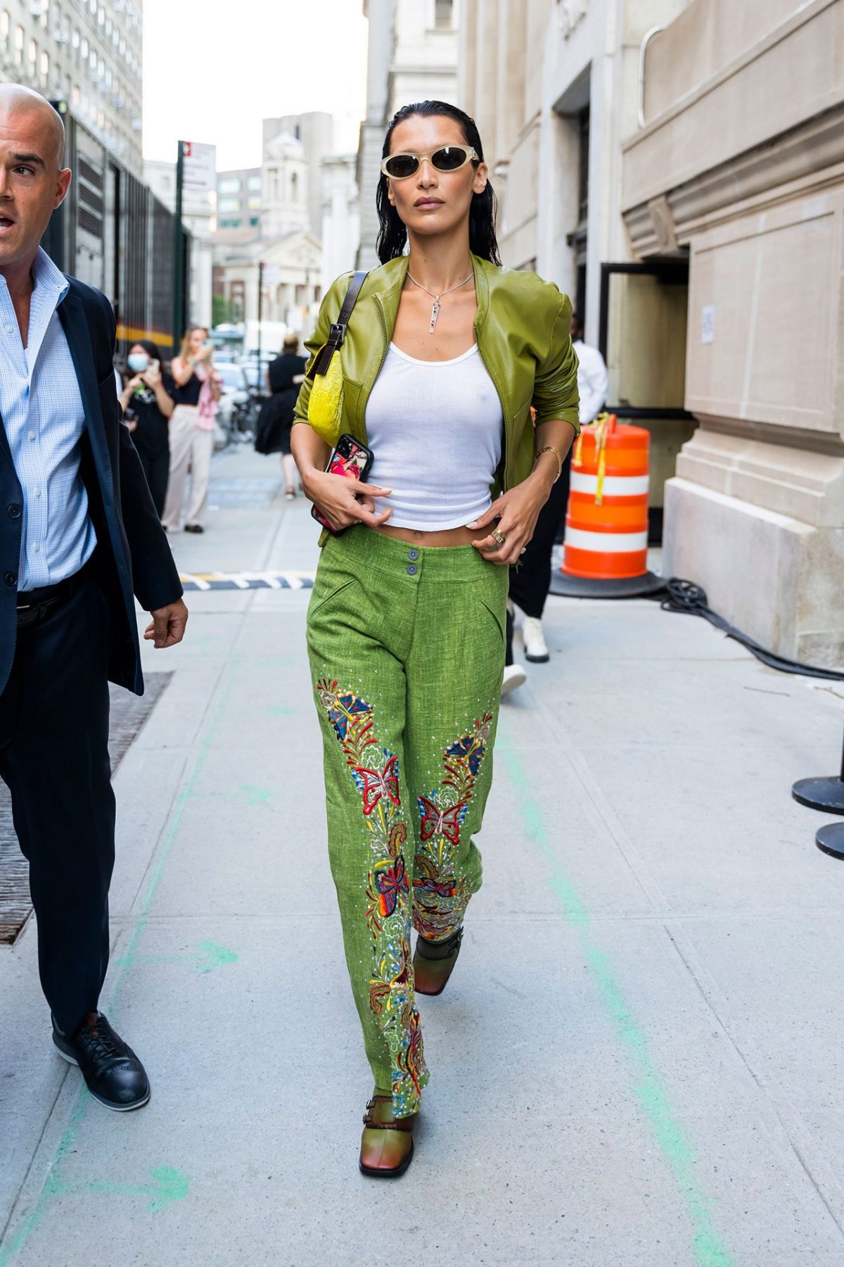 她的街拍也不遜色,甚至擁有更大的影響力。Lyst在2022年的年度時尚報告中將Bella Hadid稱之為「年度最有影響力的著裝者」(Power Dresser of the Year),因為她的穿搭引發了大眾對Y2K的搜索量增加1900%,緊身胸衣搜索量增加70%,cargo風格褲子搜索增加56%,迷你厚底Ugg靴子增加152%。