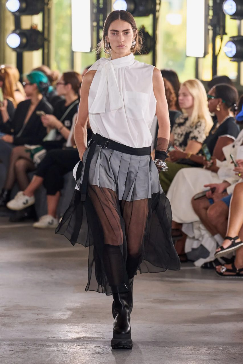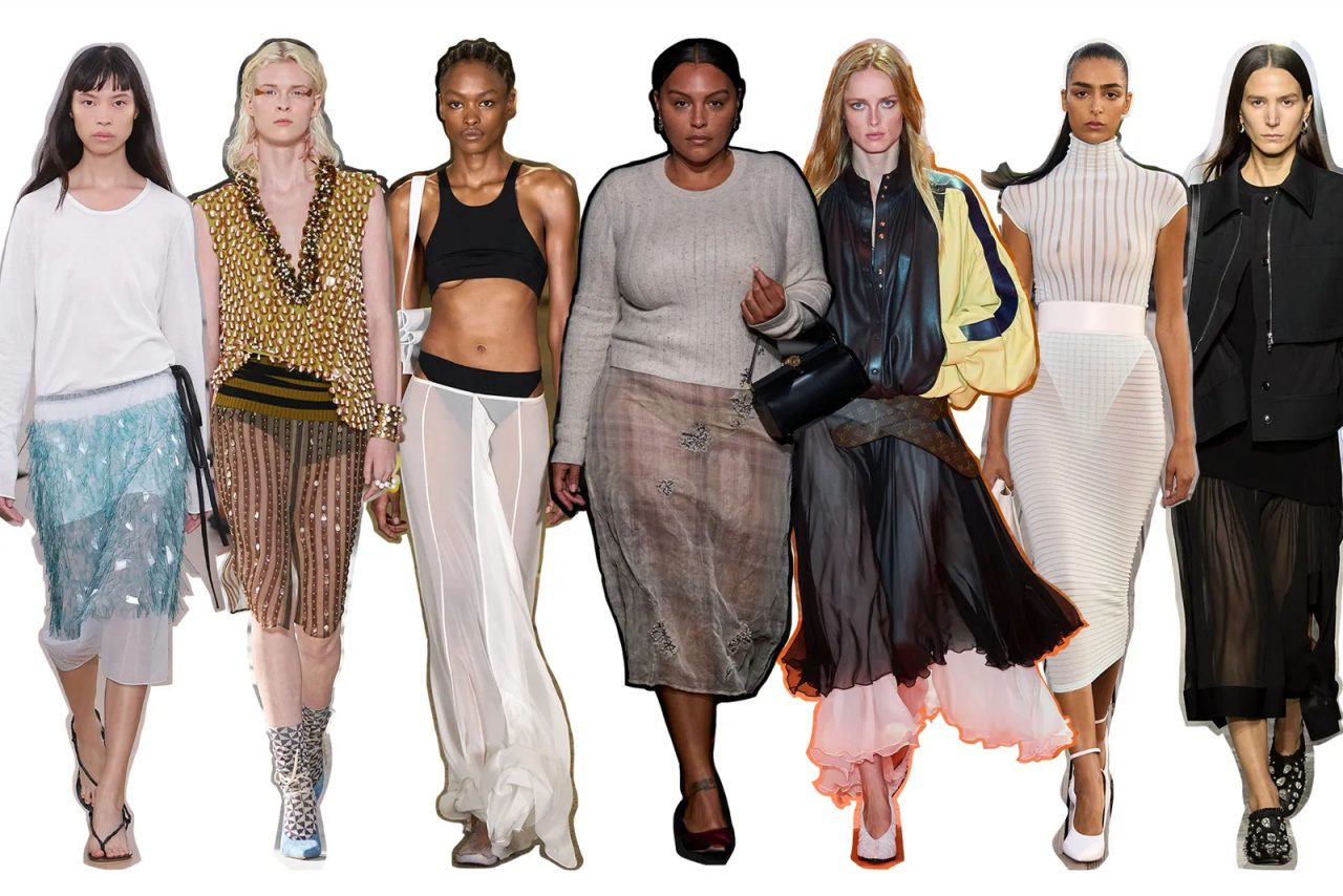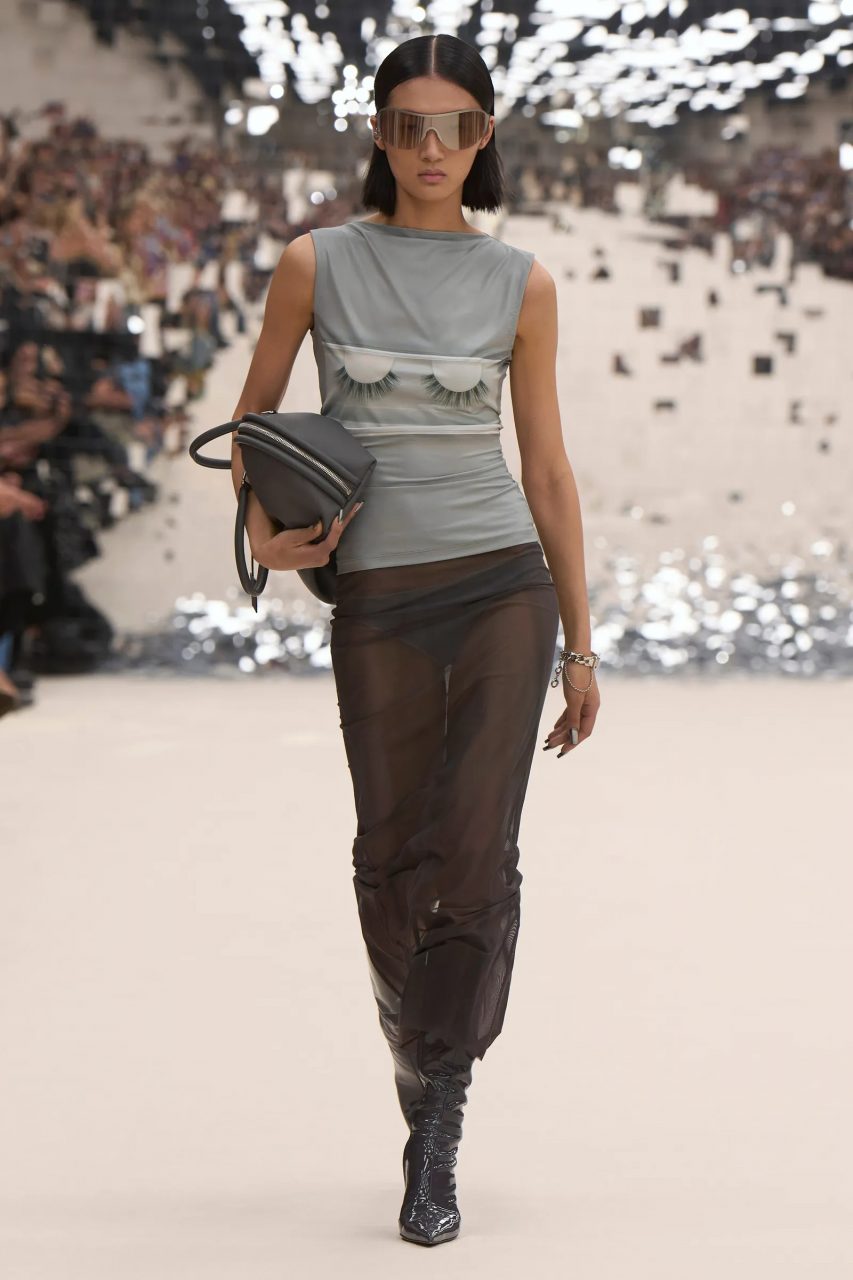 在經歷了幾季薄紗飄逸的禮服和以內衣為靈感的細節設計之後,透視裙成為春季的焦點,無論是白天還是夜晚,它都是值得嘗試的性感造型。Altuzarra將透視鉛筆裙與柔軟的圓領毛衣和手提包搭配在一起,展現出淑女風范,這種搭配在Carolina Herrera、Coperni、Givenchy和Carven等品牌中也有出現。如果你覺得這樣的搭配有點浮誇,那就像在Louis Vuitton時裝騷上看到的那樣,將薄紗層疊加倍,再搭配一件Bomber Jacket和粗款腰帶。
