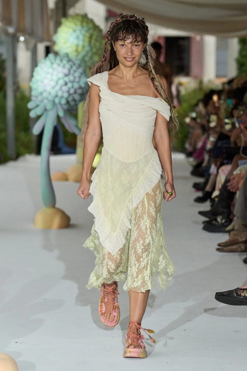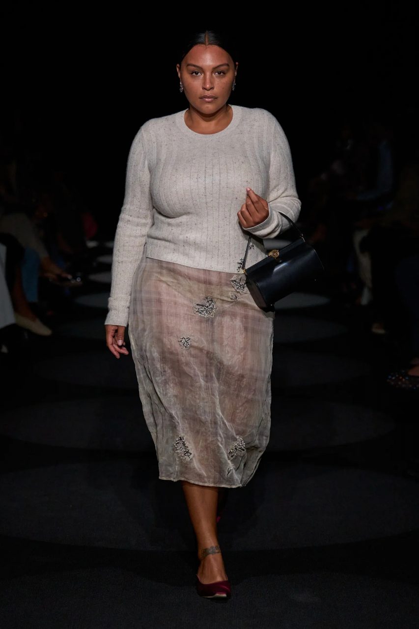 設計師們在2024年春夏時裝周上采取了相對保守的策略,柔和的色調和黑白色遮蓋了通常在春夏系列中出現的鮮豔色彩。「Retina-searing Red」是為數不多的幾種色調之一,它成功地通過了色輪的「封殺」。後疫情時代的身體正向主義和相應的裸露造型在很大程度上已經淡化,隨之而來的是天橋上開始出現更多不同的體型。