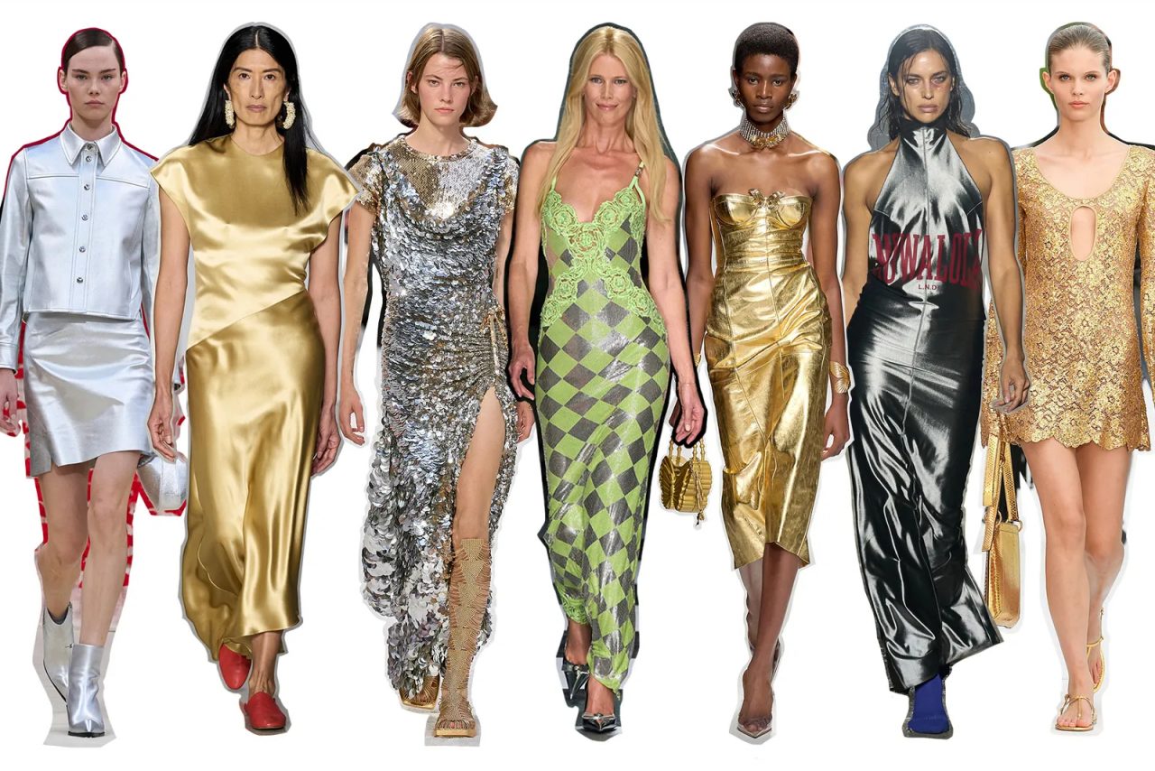 亮片、哩士和金屬裝飾似乎從未離開過時尚的潮流軌道,但隨著主辦城市巴黎展望2024年夏季奧運會,它們在春季再次獲得了關注。超模的優雅漫步無疑也起到了推波助瀾的作用:在Ralph Lauren的時裝展上,Christy Turlington身穿態金色禮服,宛若雕塑,顯得高挑優雅,而在Versace的天橋上,Claudia Schiffer將棋盤格吊帶裙展現出了柔美的流動感。