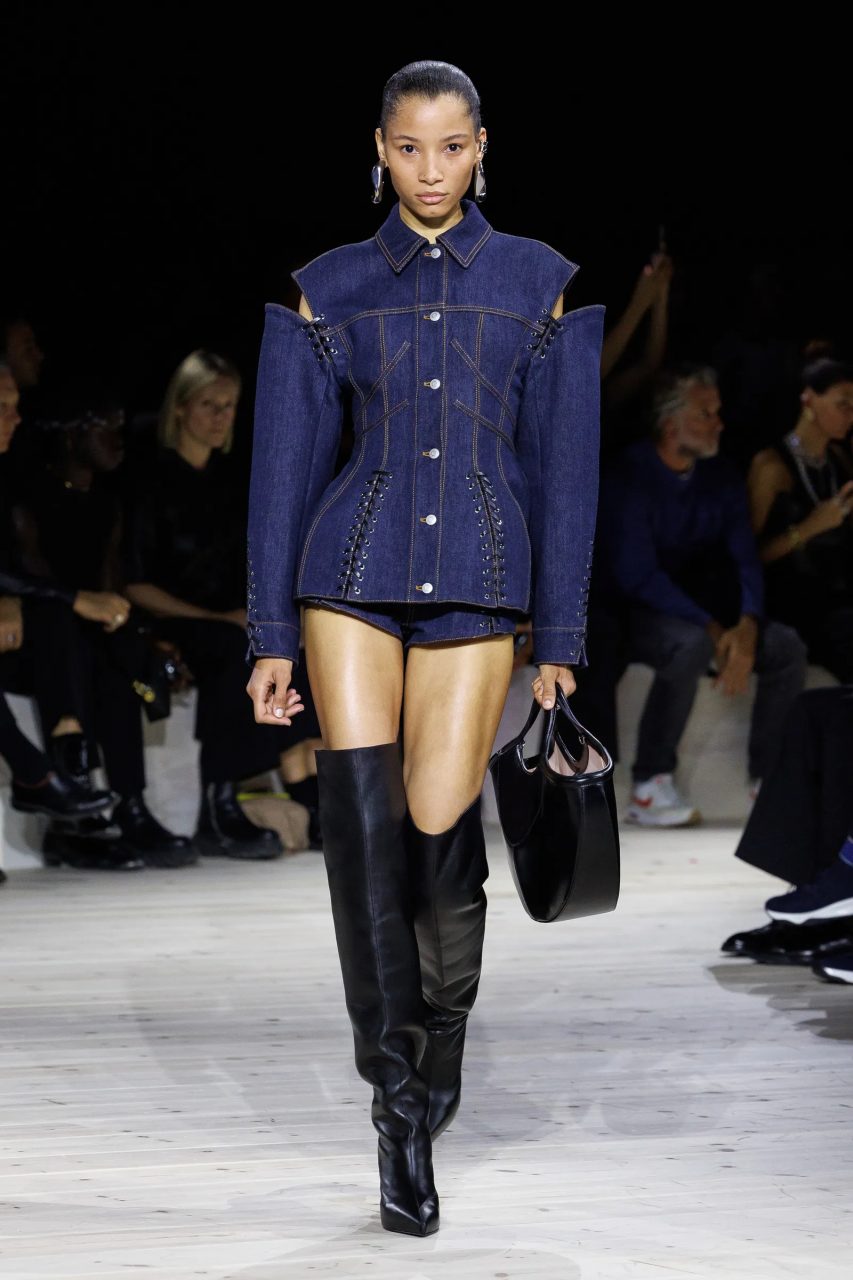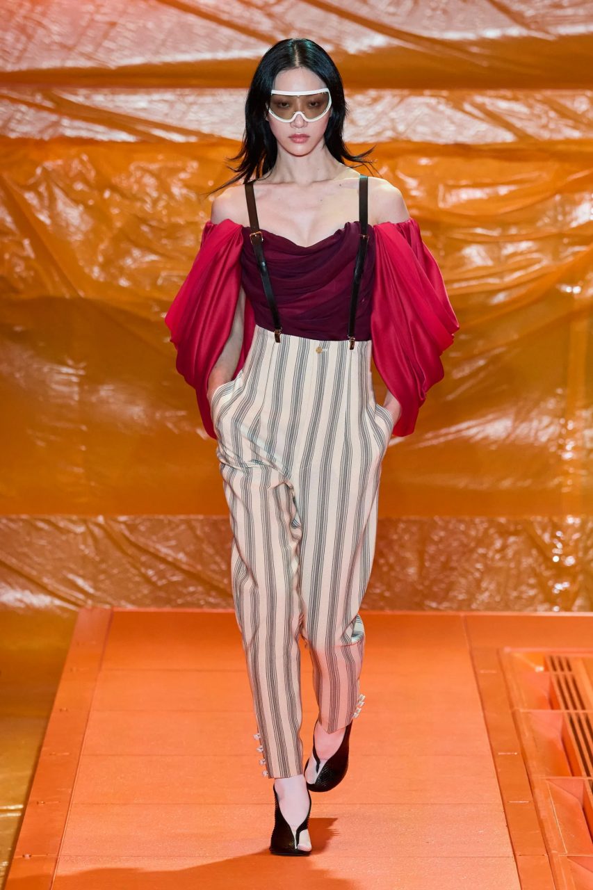 相信Jonathan Anderson會定義這個季節的輪廓。這位來自Loewe的設計師為了慶祝他在這個西班牙品牌工作 10 周年,推出了一種全新的超高腰褲型。實際上,褲子上還附帶了一個內置胸衣,將其固定在胸部以下的位置。Alaïa、Hermès、Louis Vuitton和Saint Laurent等品牌也推出該款褲型,證實這款褲裝能瞬間拉長腿部線條。