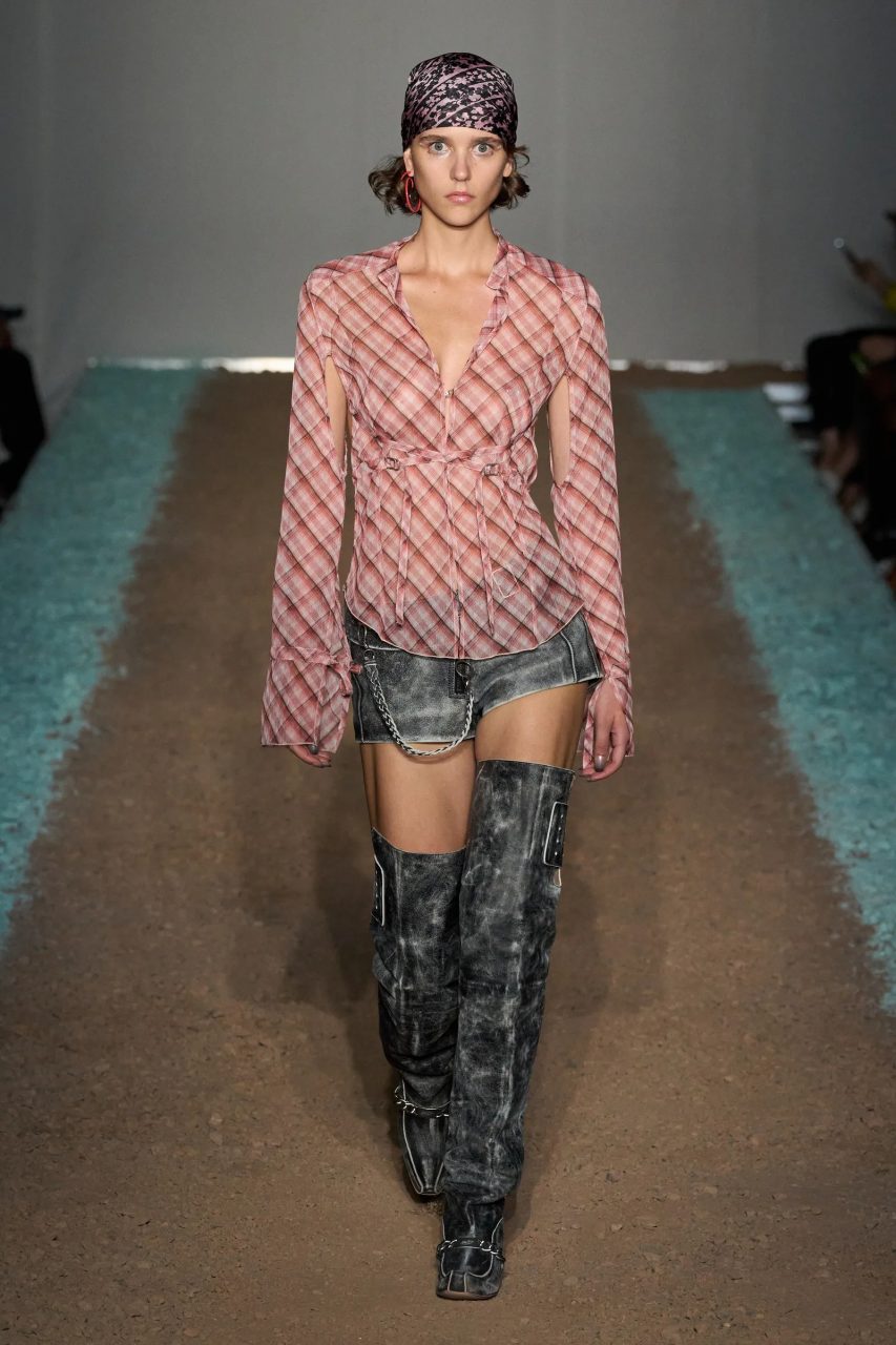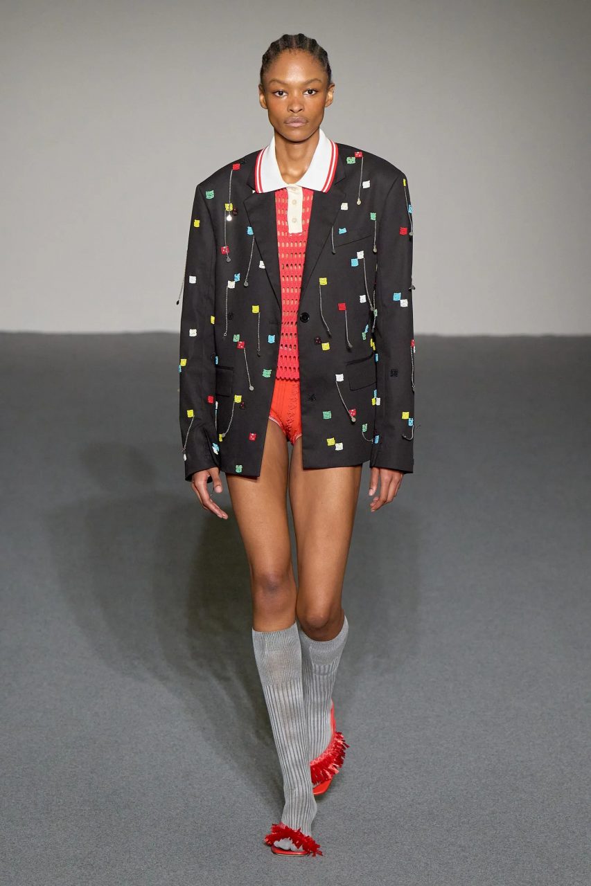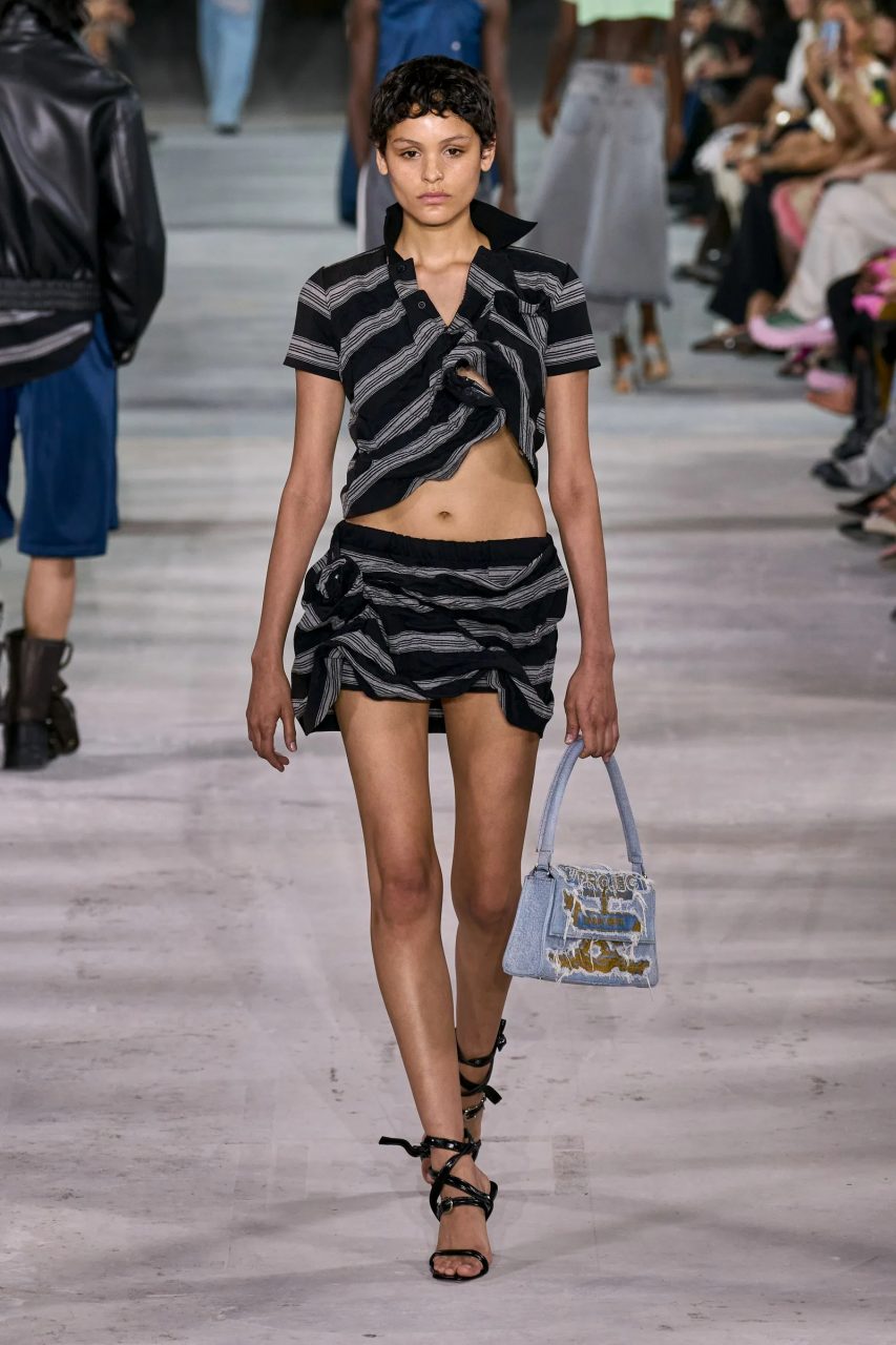 隨著Miu Miu成為時裝騷日程表上最具影響力的時裝品牌之一,準備看到更多這種帶有領的棉質款式吧!從男式沖浪短褲到荷葉邊迷你裙,從金色錦緞連衣裙到亮片襯衫,它的搭配極具多元性。這種鄉村俱樂部的氛圍在其他地方也得以延續,橄欖球衫在 Dries Van Noten 和 DSquared2 的時裝展上大放異彩,而Chanel和The Row則分別以人字拖和浴巾作為配飾。讓它看起來毫不費力的關鍵是什麼?記住把頭髮弄亂,可以為全身造型增添隨性態度。