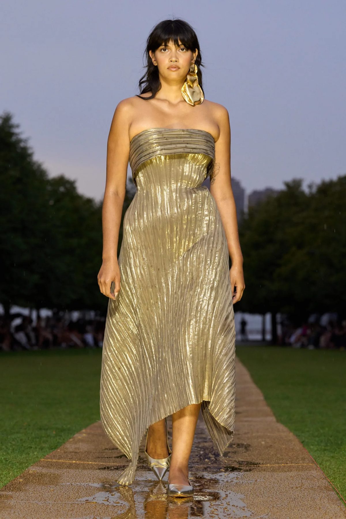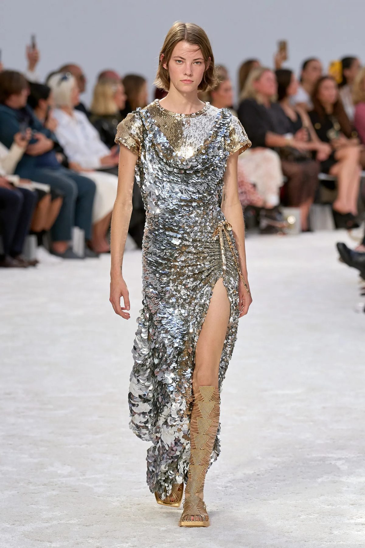 亮片、哩士和金屬裝飾似乎從未離開過時尚的潮流軌道,但隨著主辦城市巴黎展望2024年夏季奧運會,它們在春季再次獲得了關注。超模的優雅漫步無疑也起到了推波助瀾的作用:在Ralph Lauren的時裝展上,Christy Turlington身穿態金色禮服,宛若雕塑,顯得高挑優雅,而在Versace的天橋上,Claudia Schiffer將棋盤格吊帶裙展現出了柔美的流動感。