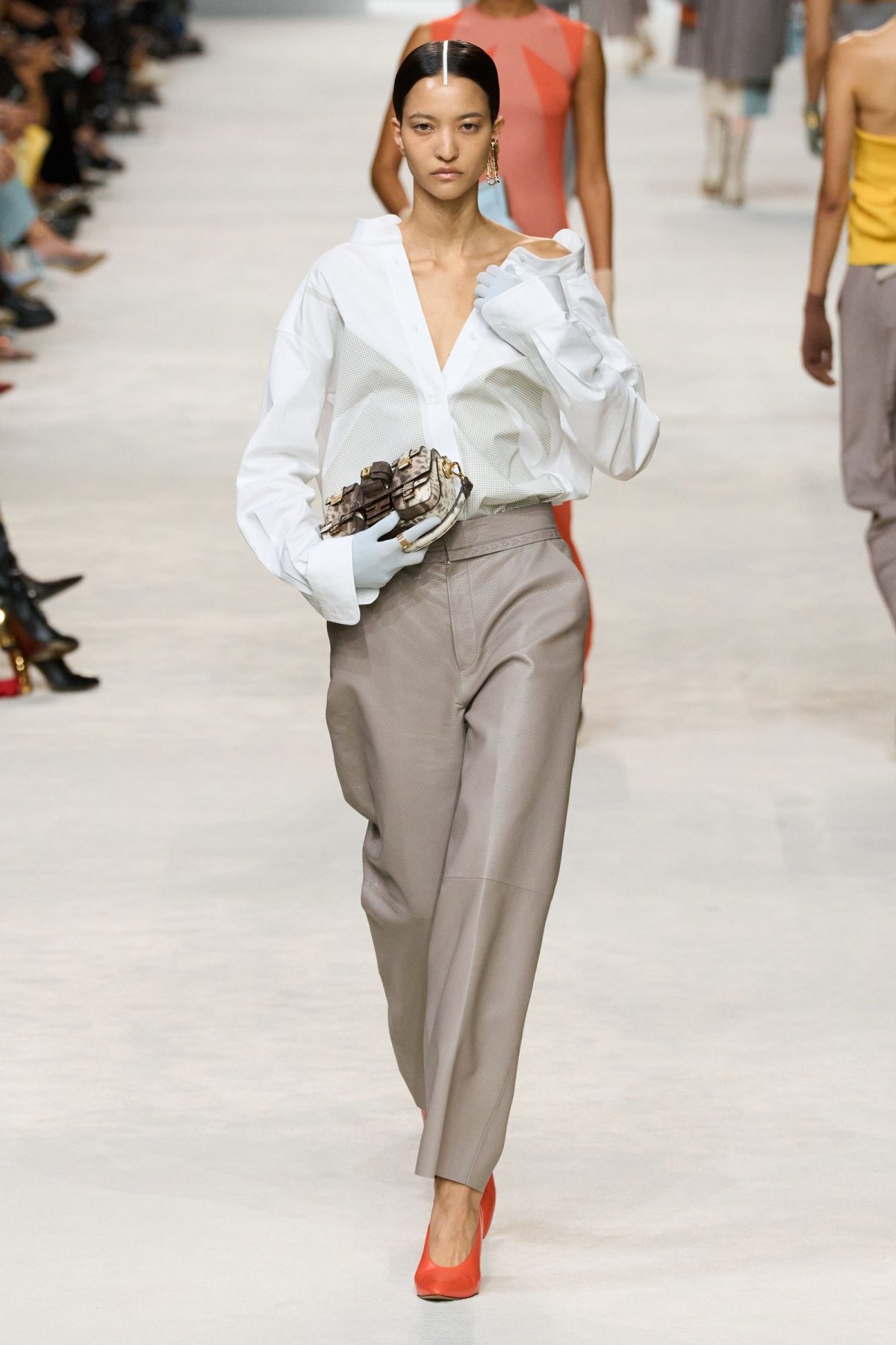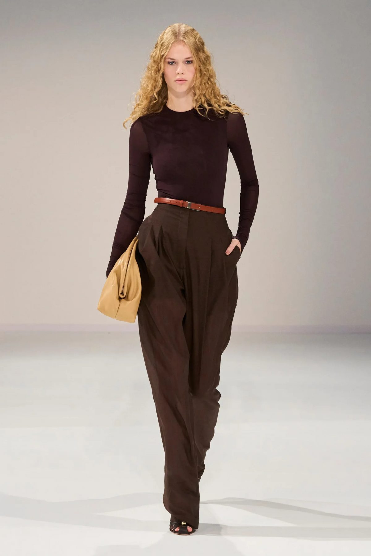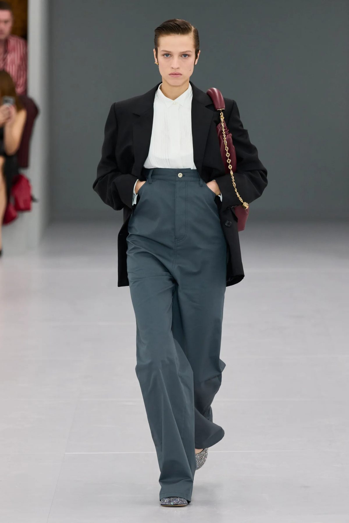 相信Jonathan Anderson會定義這個季節的輪廓。這位來自Loewe的設計師為了慶祝他在這個西班牙品牌工作 10 周年,推出了一種全新的超高腰褲型。實際上,褲子上還附帶了一個內置胸衣,將其固定在胸部以下的位置。Alaïa、Hermès、Louis Vuitton和Saint Laurent等品牌也推出該款褲型,證實這款褲裝能瞬間拉長腿部線條。
