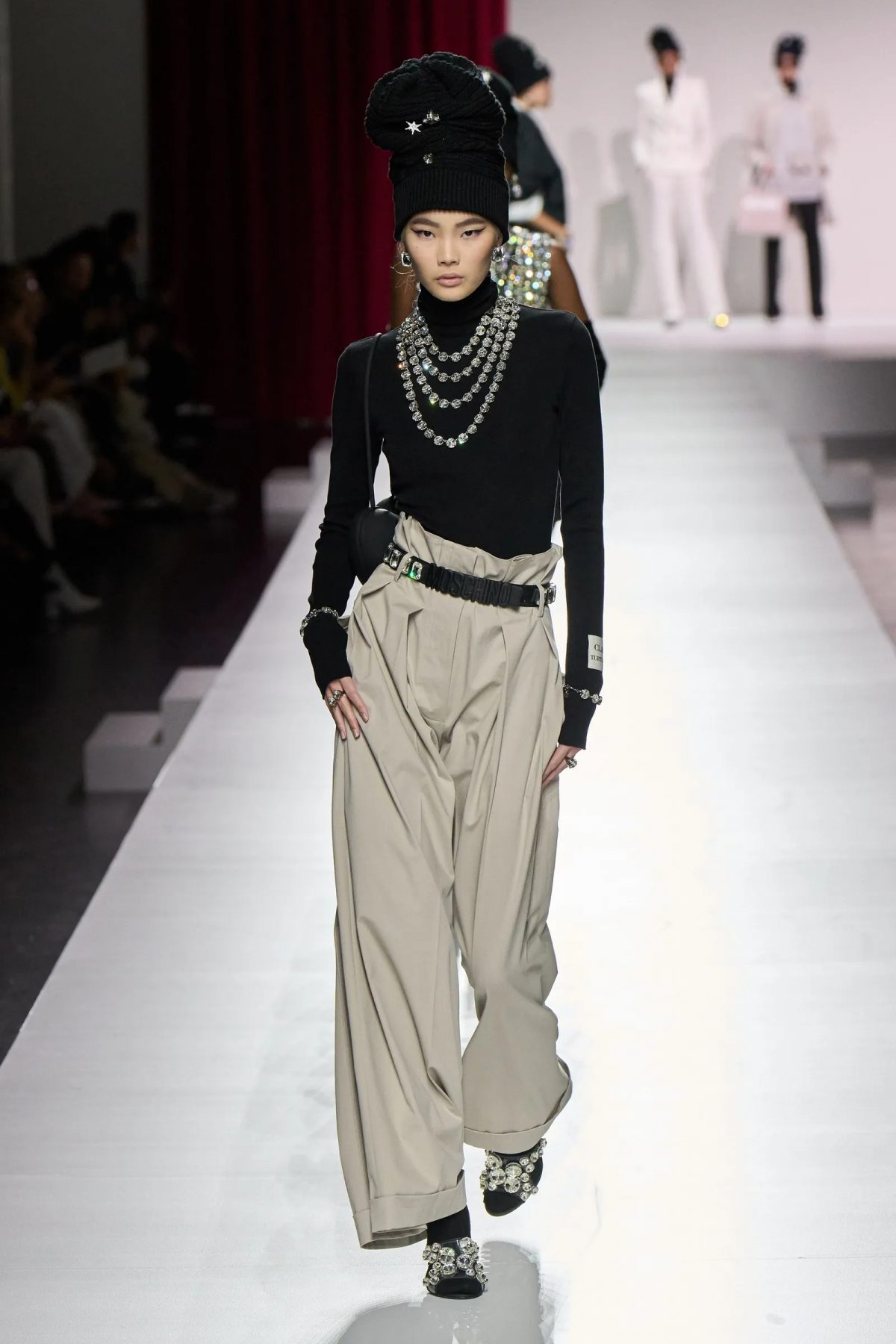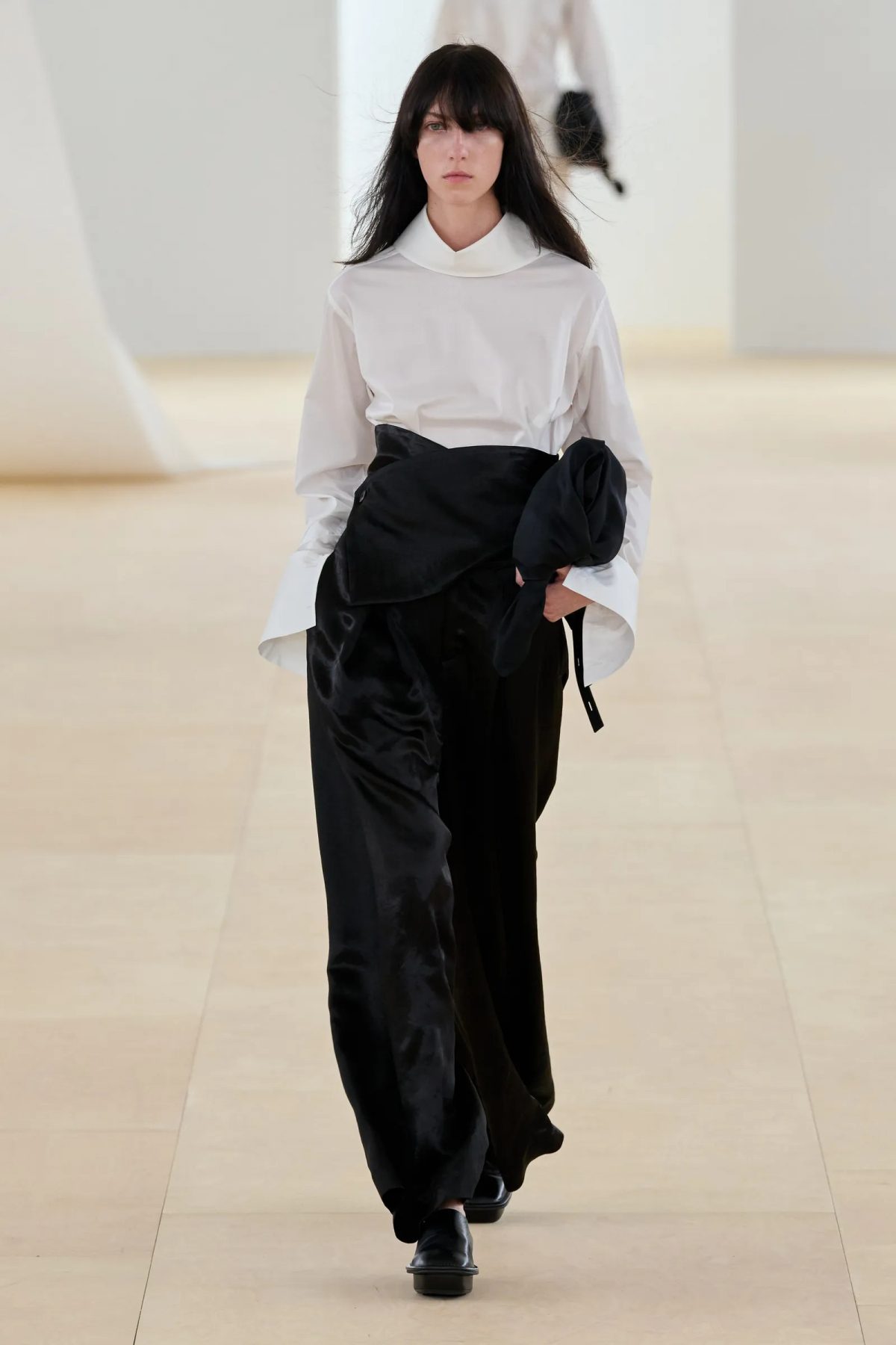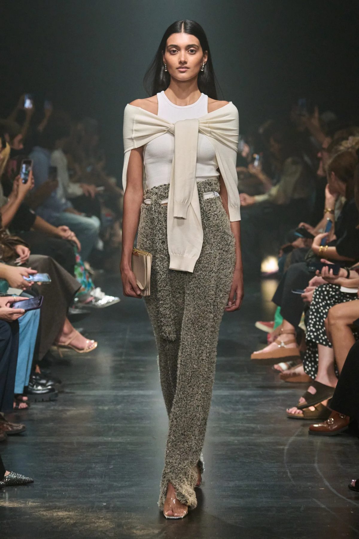 相信Jonathan Anderson會定義這個季節的輪廓。這位來自Loewe的設計師為了慶祝他在這個西班牙品牌工作 10 周年,推出了一種全新的超高腰褲型。實際上,褲子上還附帶了一個內置胸衣,將其固定在胸部以下的位置。Alaïa、Hermès、Louis Vuitton和Saint Laurent等品牌也推出該款褲型,證實這款褲裝能瞬間拉長腿部線條。