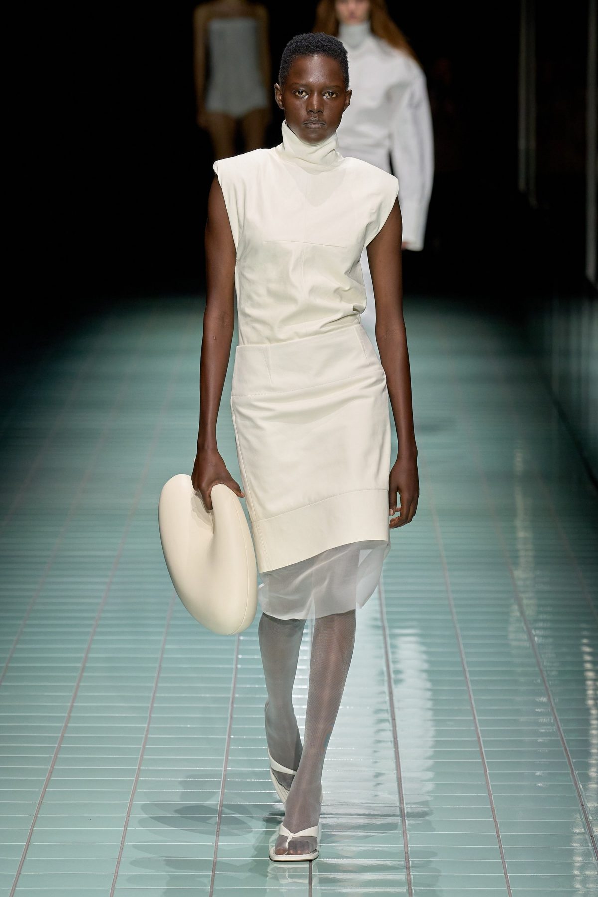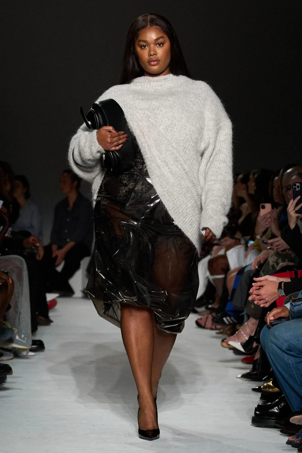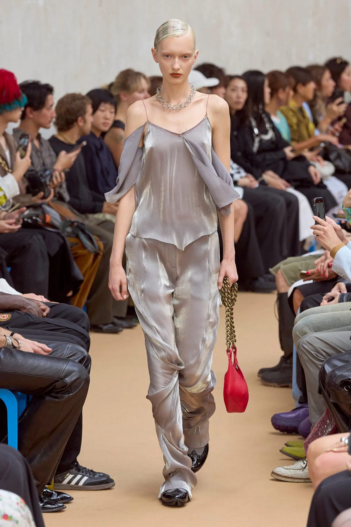 設計師們在2024年春夏時裝周上采取了相對保守的策略,柔和的色調和黑白色遮蓋了通常在春夏系列中出現的鮮豔色彩。「Retina-searing Red」是為數不多的幾種色調之一,它成功地通過了色輪的「封殺」。後疫情時代的身體正向主義和相應的裸露造型在很大程度上已經淡化,隨之而來的是天橋上開始出現更多不同的體型。