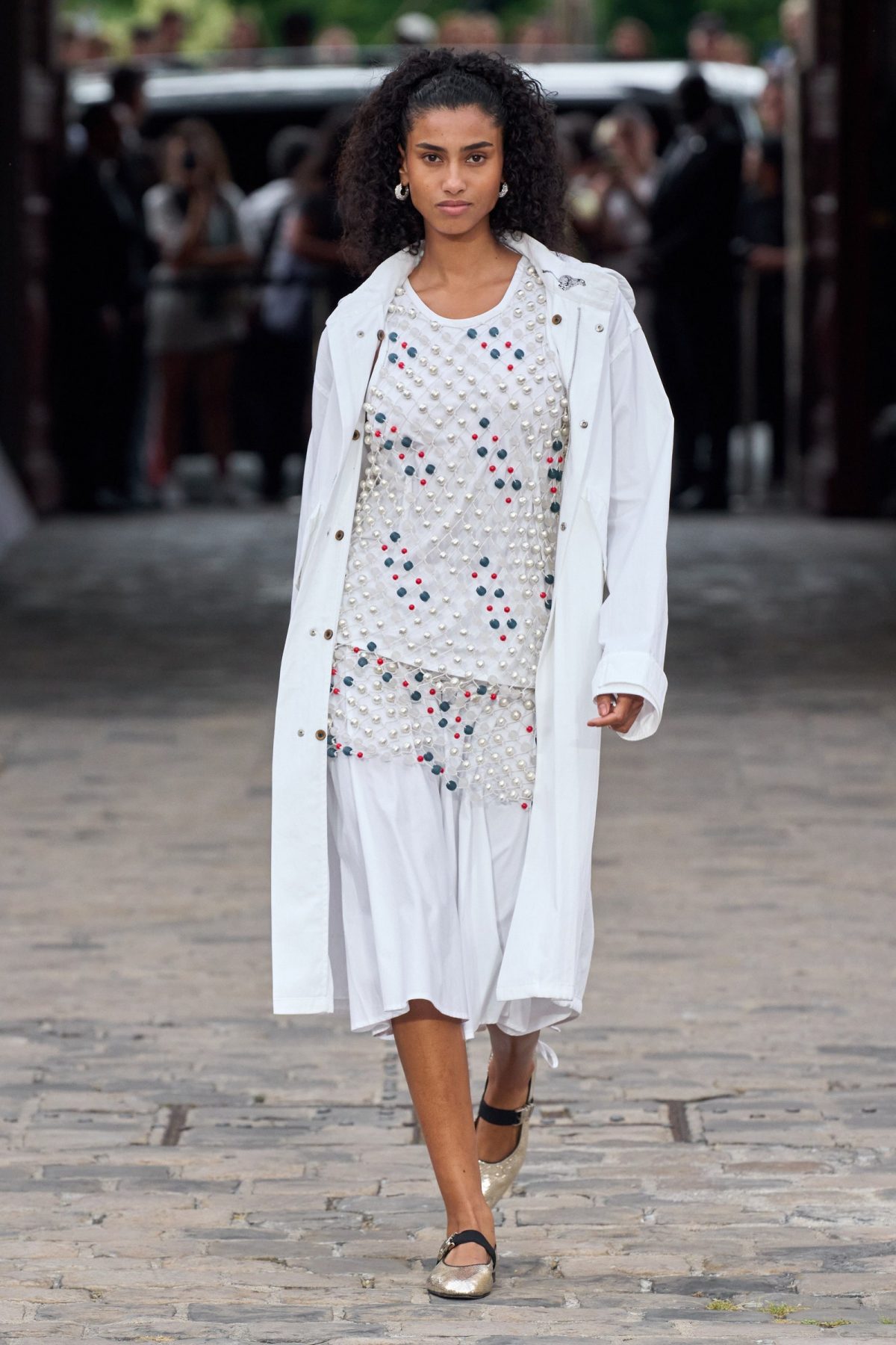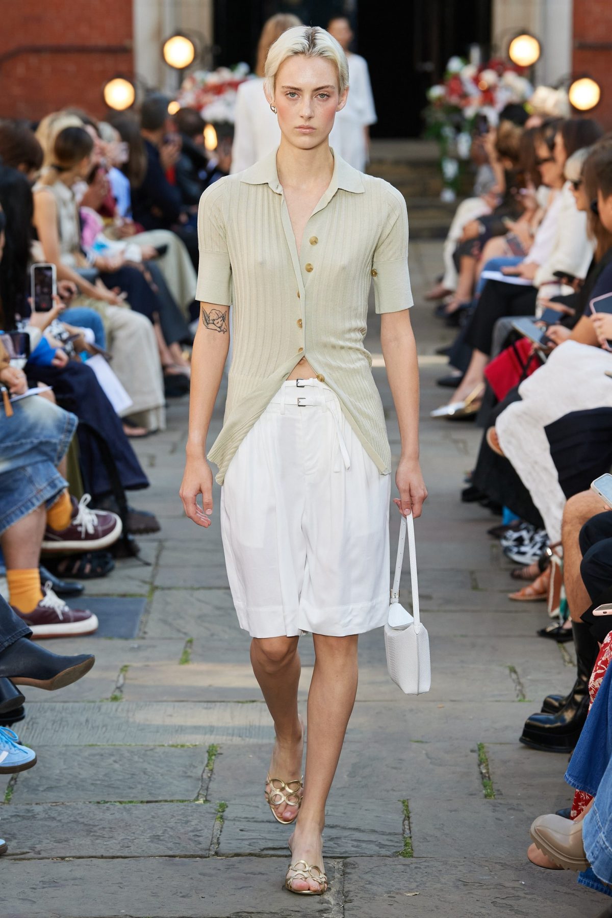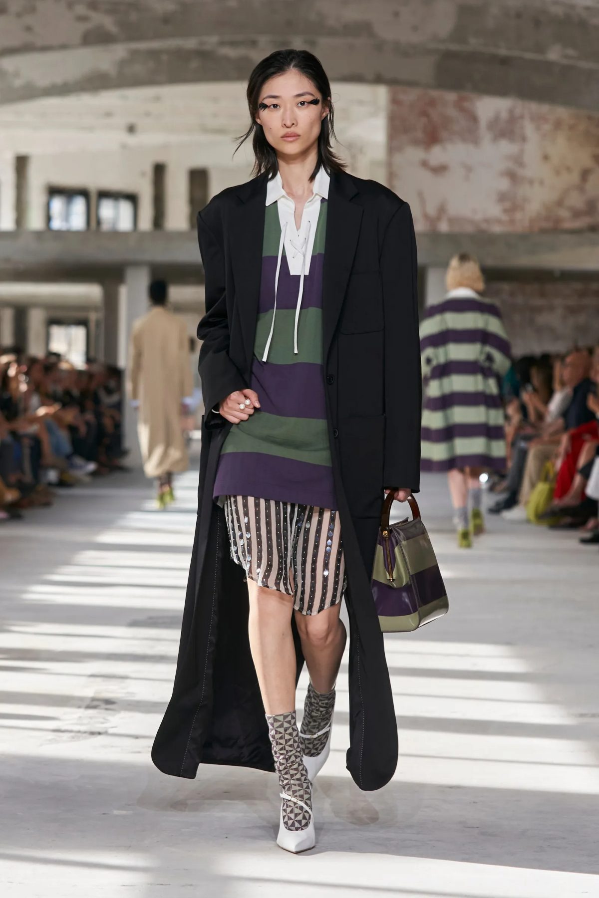 隨著Miu Miu成為時裝騷日程表上最具影響力的時裝品牌之一,準備看到更多這種帶有領的棉質款式吧!從男式沖浪短褲到荷葉邊迷你裙,從金色錦緞連衣裙到亮片襯衫,它的搭配極具多元性。這種鄉村俱樂部的氛圍在其他地方也得以延續,橄欖球衫在 Dries Van Noten 和 DSquared2 的時裝展上大放異彩,而Chanel和The Row則分別以人字拖和浴巾作為配飾。讓它看起來毫不費力的關鍵是什麼?記住把頭髮弄亂,可以為全身造型增添隨性態度。