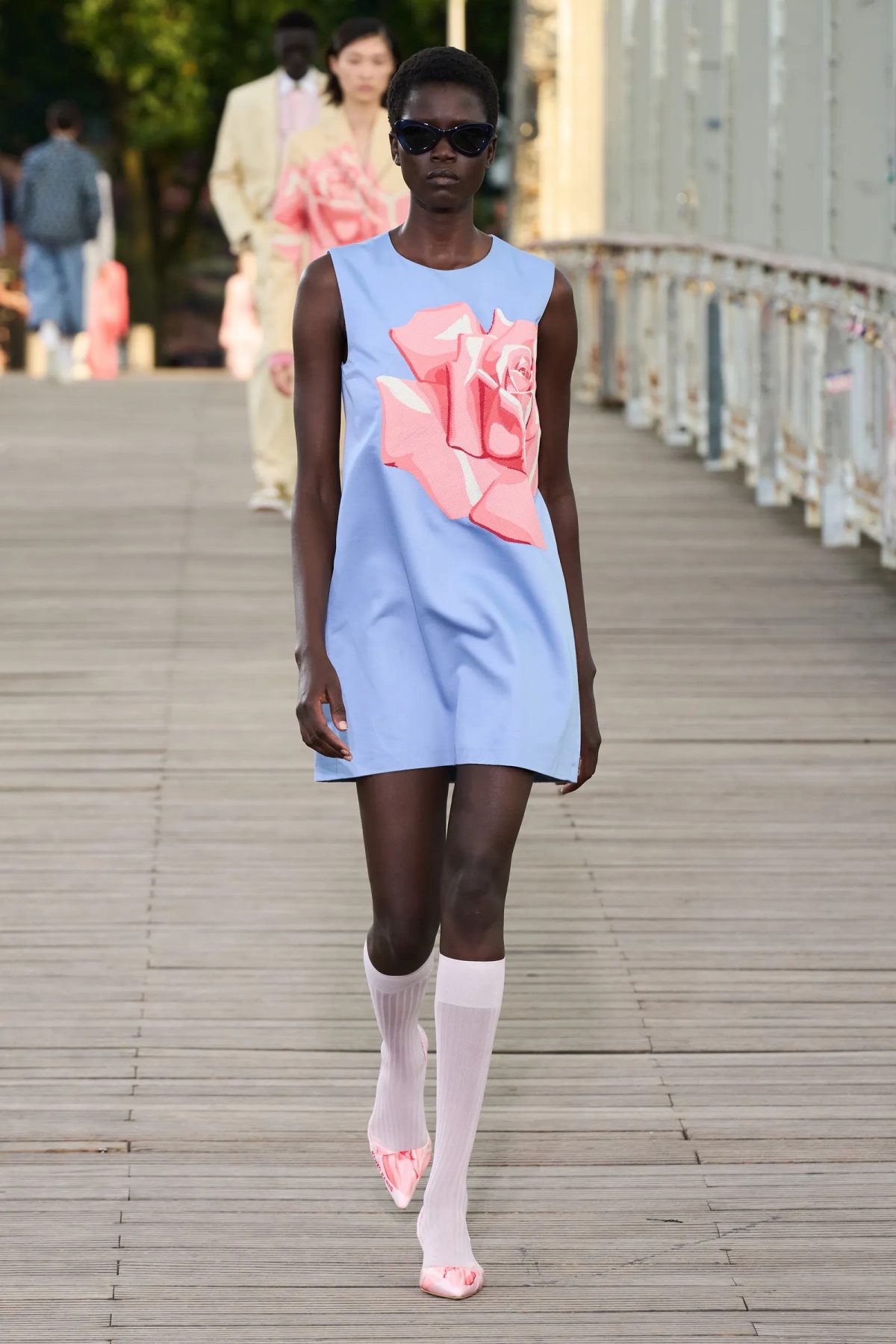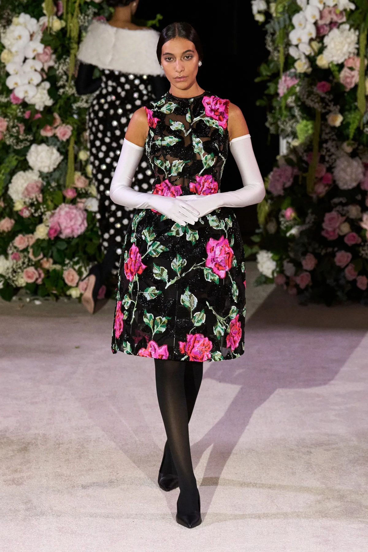 在Simone Rocha的時裝騷上,空氣中彌漫著浪漫的氣息,鮮嫩的淡粉色長莖玫瑰夾在層層薄紗之間,構成了最美的派對禮服。玫瑰主題在春季的四大時尚之都一直奇妙地持續著。Olivier Rousteing在他的Balmain時裝發佈會前被盜竊了大部分服裝,他引用了Gertrude Stein於1913年作的詩《Sacred Emily》中著名的一句「Rose is a rose is a rose」,並在花卉裝飾的衣服中展示了這一主題;Sarah Burton以一朵鮮紅的玫瑰和女性解剖學部分為靈感,結束了她在Alexander McQueen的任期。從玫瑰印花、花卉點綴、立體刺繡到花瓣形狀的輪廓,從Rei Kawakubo到Richard Quinn的設計師們都感受到了一種「荊棘」的氣息。