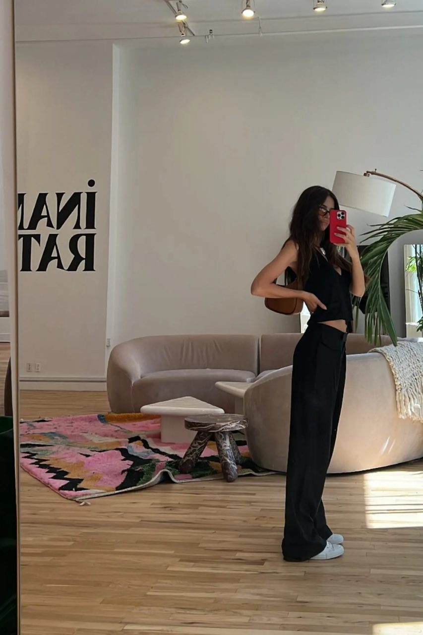 The Row 的忠實粉絲俱樂部,包括了一眾 It Girl 如 Zoë Kravitz、Jennifer Lawrence 和 Rosie Huntington-Whiteley,是由那些通過鞋類和包類首次試探性地進入該品牌的簡約世界的顧客組成。每個成員都擁有拉鍊式皮革踝靴(紐約冬季的必備品),以及N/S手提包或 Half Moon 手袋。雖然曼哈頓人更喜歡前者,但模特們兒更喜歡 Half moon 手袋的復古外觀。它已成為一種身份象徵,表明你有足夠的自信,可以只帶一個信封大小的容器來裝你的必需品(像 EmRata,她是這方面的大師),而 The Row主打的就是這些能提升造型的基本款。