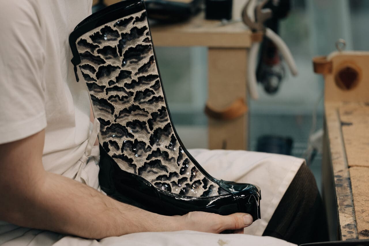 在2024/25工藝坊系列中的配飾鞋履,分別由1936年創立的Maison Michel 帽藝工坊、1950年起家的Goossens金飾工藝坊以及Massaro鞋履坊締造,為系列增添了迷人絢麗的魅力。系列中,Maison Michel所製作的皮革或毛氈窄邊帽、冷帽,為束腰帶外套配斜紋軟呢打褶半截裙等旅行裝造型添上完美一筆;擅長將金、銀、青銅、水晶岩、木材及玻璃漿等材料化為華麗首飾的Goossens,今季從品牌典藏中的一款心形首飾汲取靈感,創造出一系列鍍金首飾。勳章與手銬手鐲,靈感來自陶瓷器皿表面的花果圖案(向來自中國的古老李屬植物致意)和因歲月流逝形成的紋路;首飾背面的睡蓮葉紋理,呼應了創辦人Robert Goossens當年為Chanel女士在康朋街31號私人寓所設計的桌子圖案細節;Massaro鞋履坊鞋匠打造的中筒靴設計,意念來自Chanel女士當年一款與鞋履工坊合作的靴子,如今在系列再現了這件作品的當代版本。
