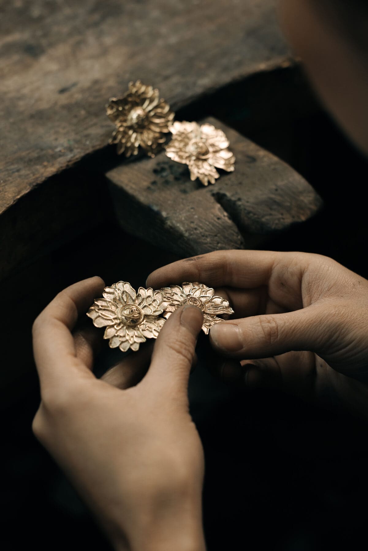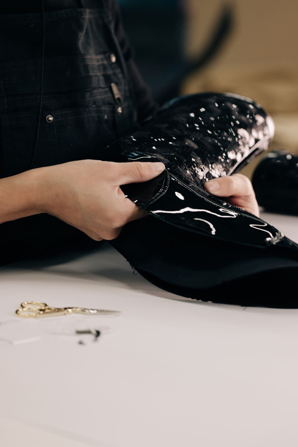 在2024/25工藝坊系列中的配飾鞋履,分別由1936年創立的Maison Michel 帽藝工坊、1950年起家的Goossens金飾工藝坊以及Massaro鞋履坊締造,為系列增添了迷人絢麗的魅力。系列中,Maison Michel所製作的皮革或毛氈窄邊帽、冷帽,為束腰帶外套配斜紋軟呢打褶半截裙等旅行裝造型添上完美一筆;擅長將金、銀、青銅、水晶岩、木材及玻璃漿等材料化為華麗首飾的Goossens,今季從品牌典藏中的一款心形首飾汲取靈感,創造出一系列鍍金首飾。勳章與手銬手鐲,靈感來自陶瓷器皿表面的花果圖案(向來自中國的古老李屬植物致意)和因歲月流逝形成的紋路;首飾背面的睡蓮葉紋理,呼應了創辦人Robert Goossens當年為Chanel女士在康朋街31號私人寓所設計的桌子圖案細節;Massaro鞋履坊鞋匠打造的中筒靴設計,意念來自Chanel女士當年一款與鞋履工坊合作的靴子,如今在系列再現了這件作品的當代版本。
