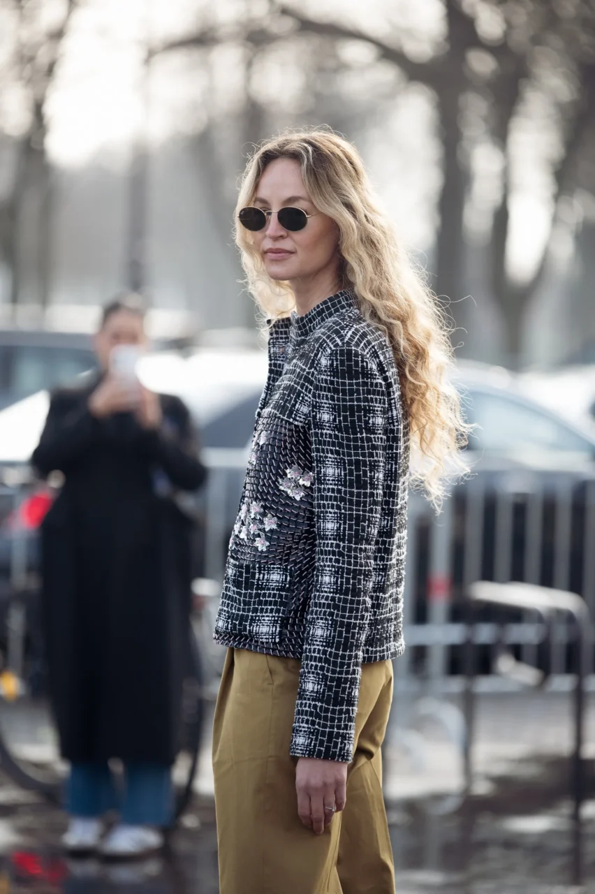 名人們長期以來偏愛纖細風格的眼鏡,但最近出現了一個明顯變化,越來越多大膽框型受到青睞:Miu Miu在2025春夏騷上推出超大鏡框的太陽眼鏡,配有漸變鏡片,鏡框以金屬和醋酸纖維製成;同樣,Jonathan Anderson在Loewe時裝展以大框鏡面飛行員眼鏡,搭配具有結構感的花卉連身裙。