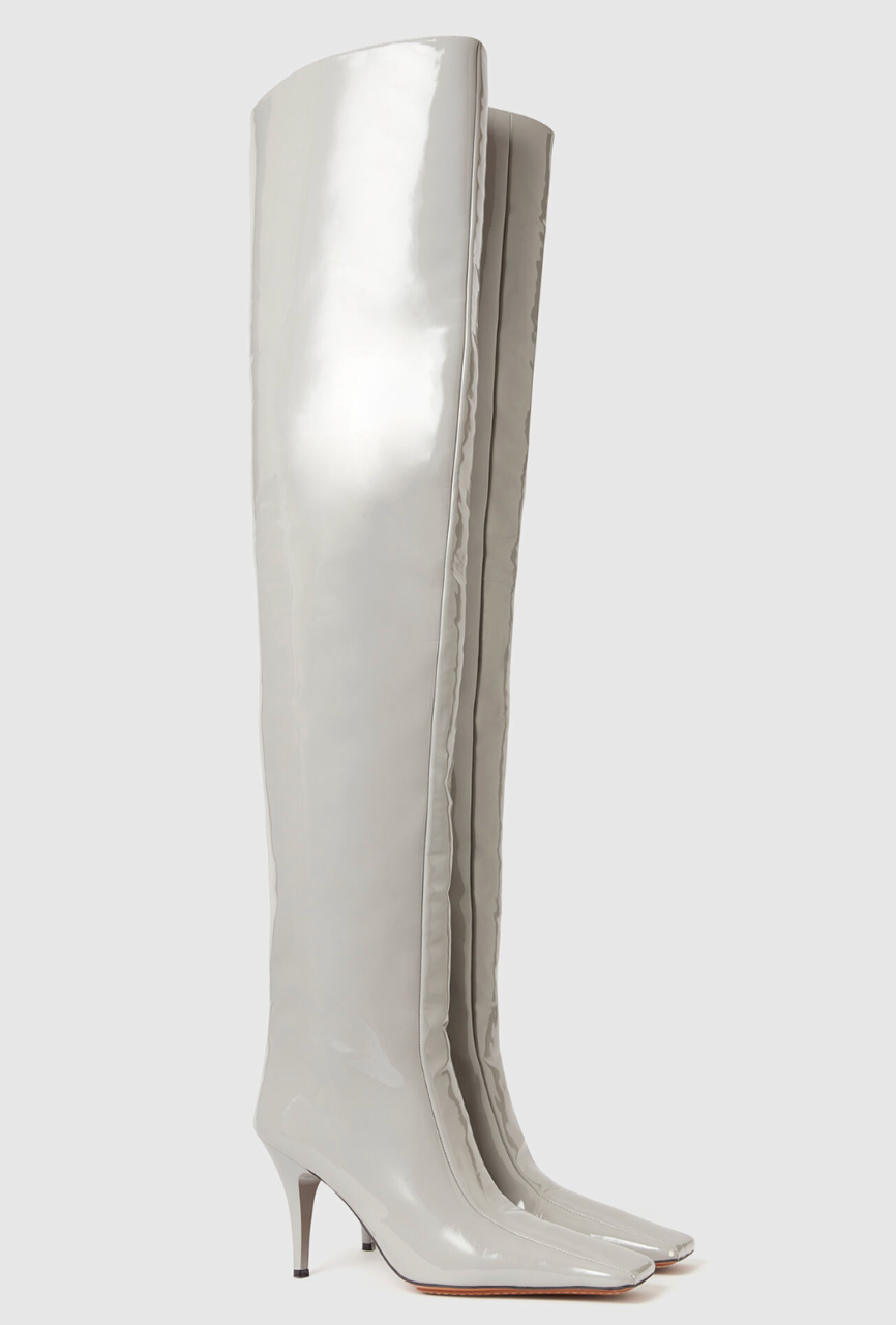 Stella McCartney 則透過展現女性力量的造型,讓過膝長靴在天橋上大放異彩。品牌特別呈現了漆皮材質的過膝長靴,搭配氣勢磅礴的寬肩連身裙,創造出專屬冬季的完美時尚組合。