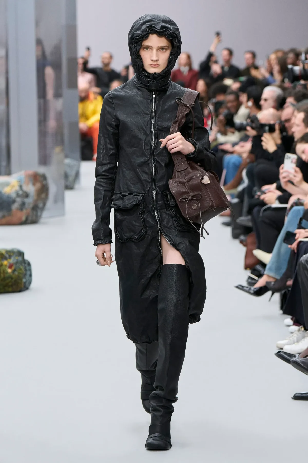 Stella McCartney 則透過展現女性力量的造型,讓過膝長靴在天橋上大放異彩。品牌特別呈現了漆皮材質的過膝長靴,搭配氣勢磅礴的寬肩連身裙,創造出專屬冬季的完美時尚組合。