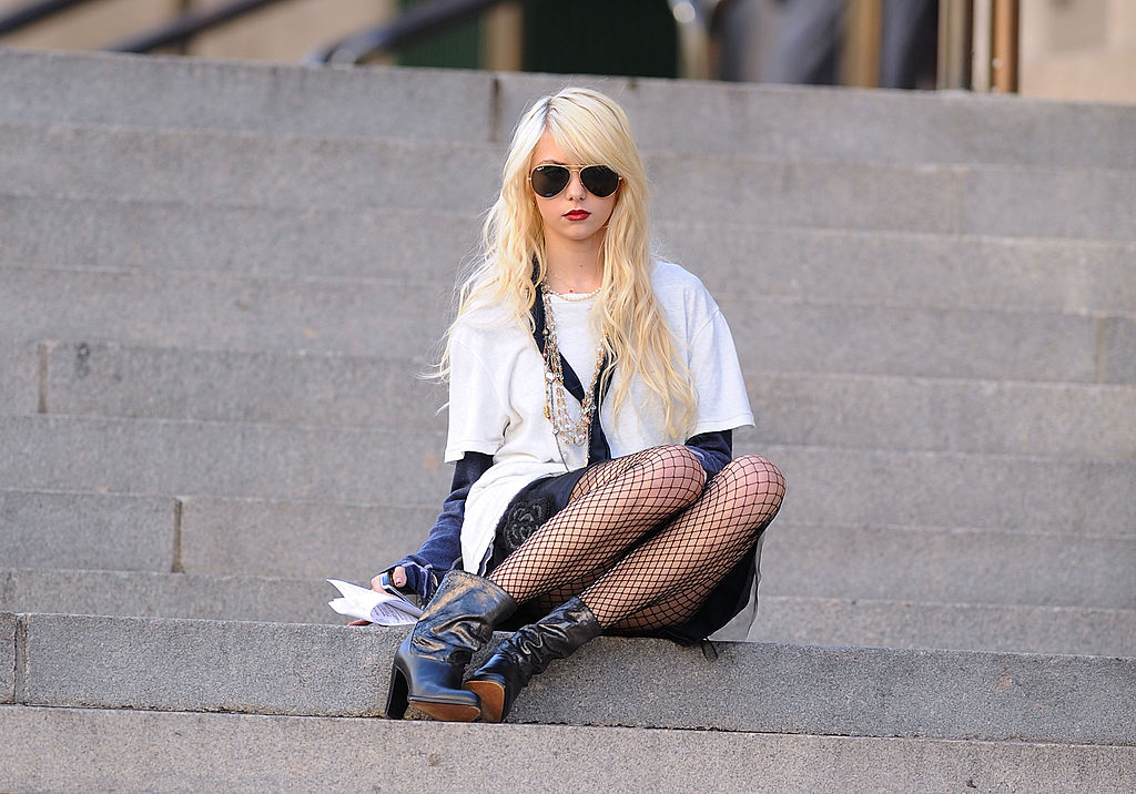 Taylor Momsen filming on location for "Gossip Girl" on the streets of Manhattan on September 14, 2009 in New York City.