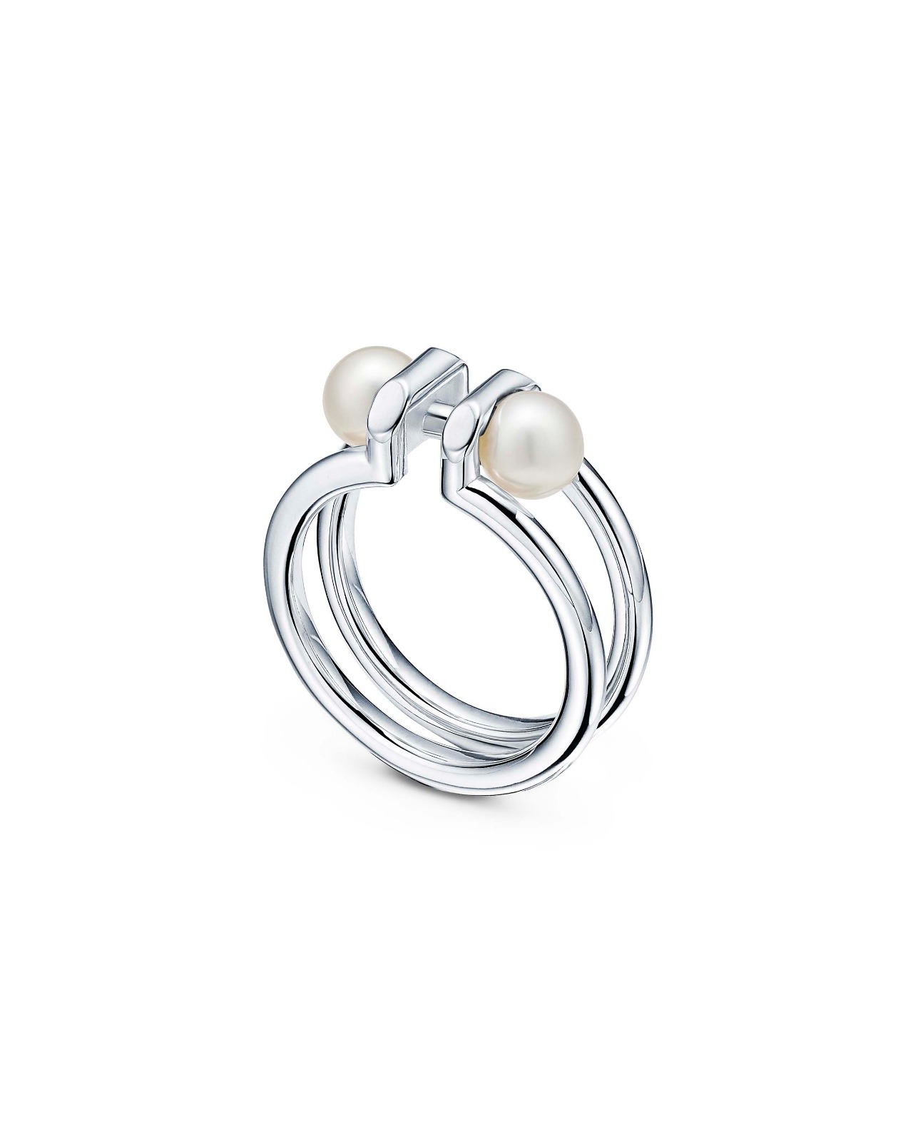 雙層指環設計非常現代,配上兩顆珍珠,貴氣十足。