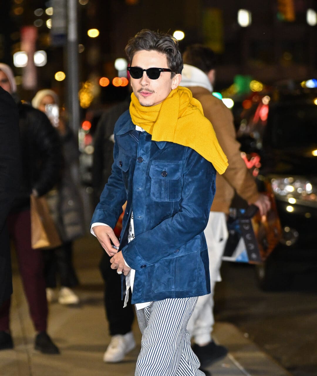NEW YORK, NEW YORK - DECEMBER 12: Timothee Chalamet arrives to "The Late Show With Stephen Colbert" at the Ed Sullivan Theater on December 12, 2024 in New York City. (Photo by James Devaney/GC Images)