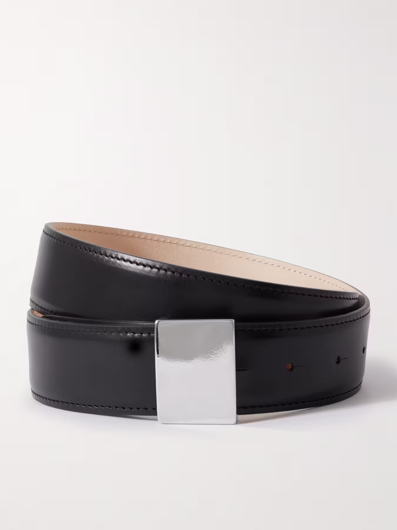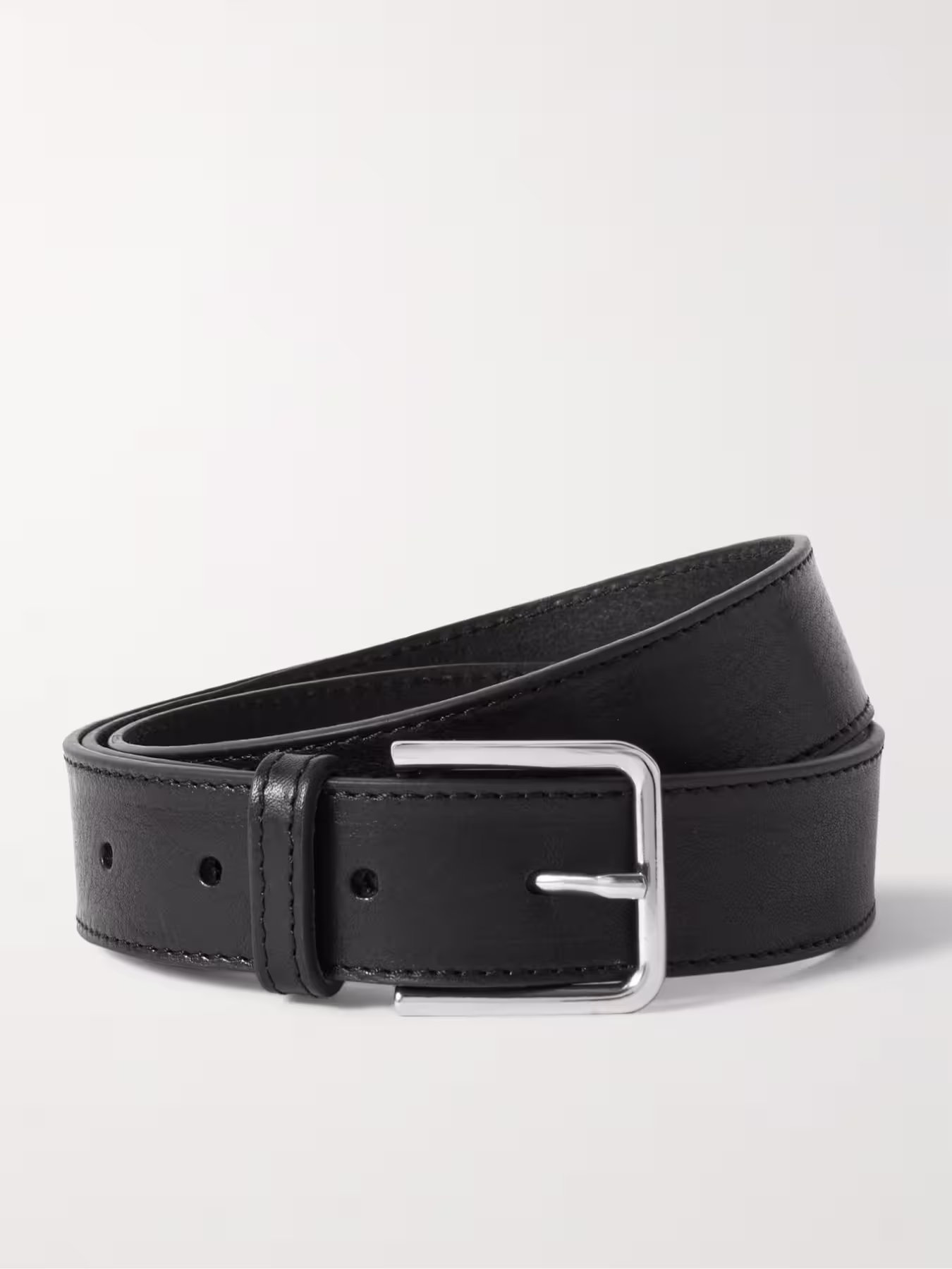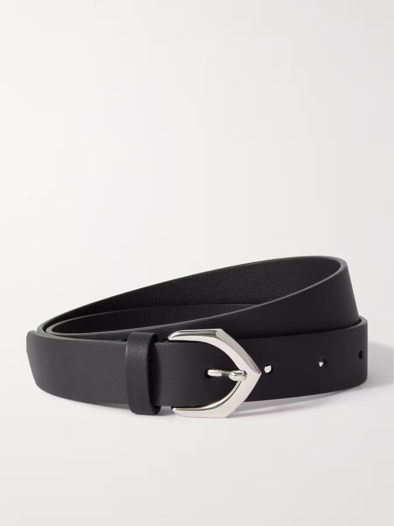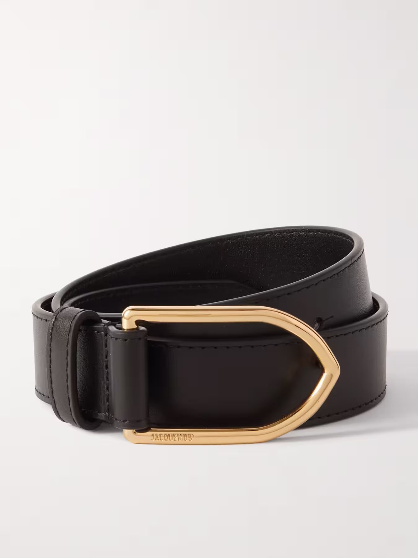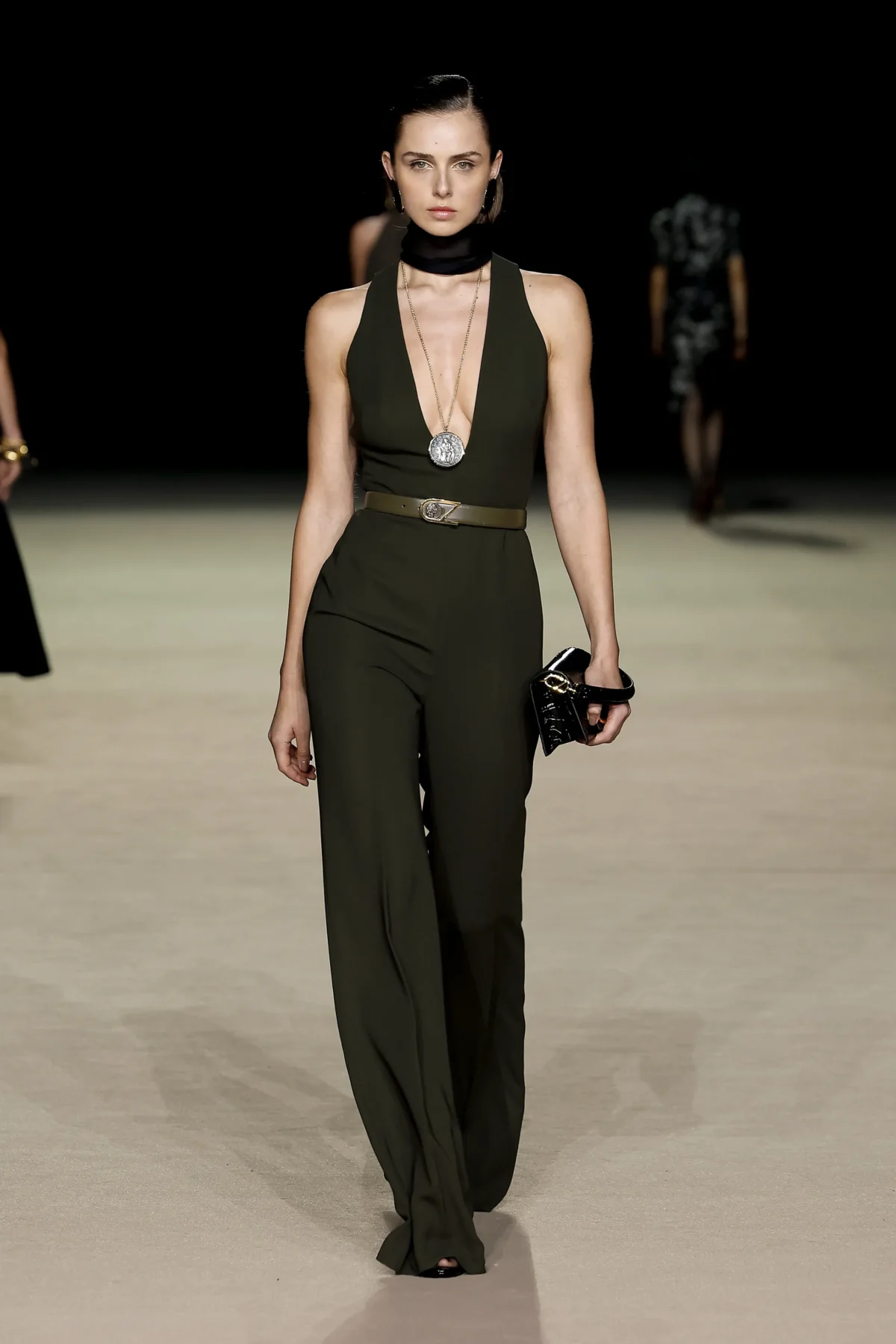 PARIS, FRANCE - SEPTEMBER 28: Juliya Pelipas wears grey suit with brown belt with silver buckle on the wais, grey blazer on top, outside Carven, during Womenswear Spring/Summer 2025 as part of Paris Fashion Week on September 28, 2024 in Paris, France. (Photo by Claudio Lavenia/Getty Images)