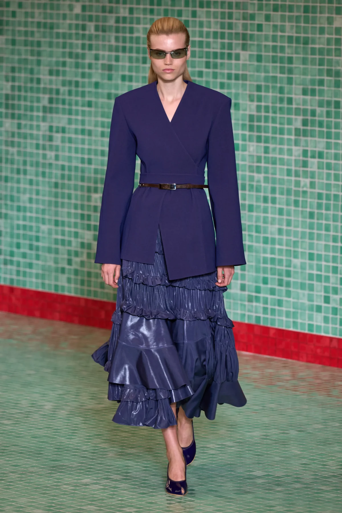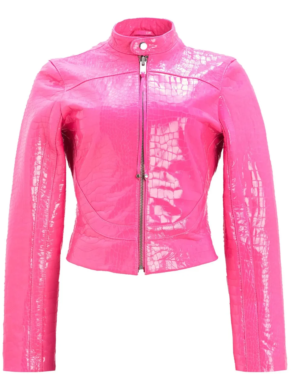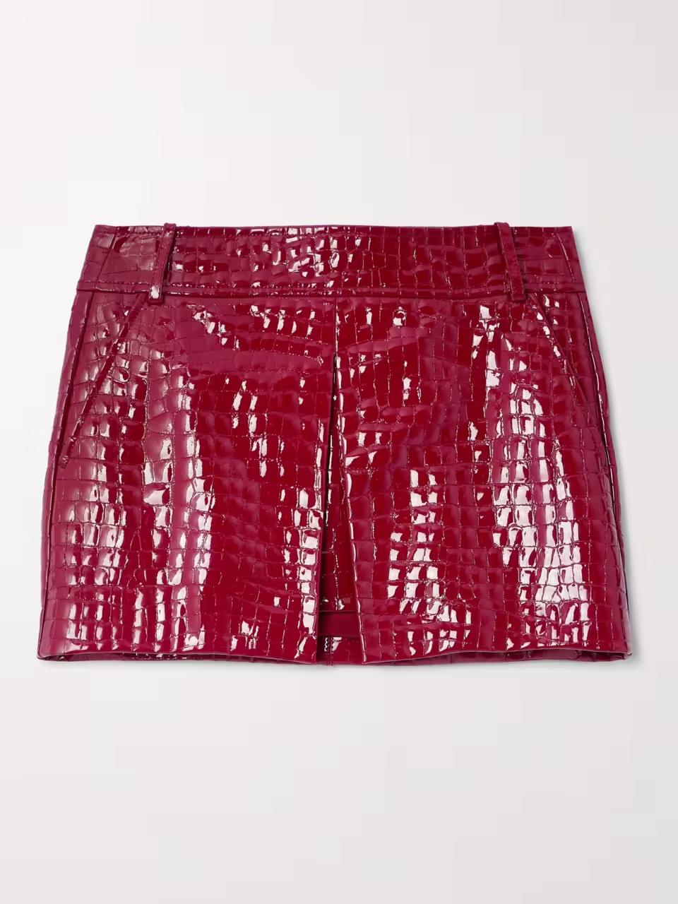 PARIS, FRANCE - MARCH 08: A guest wears black sunglasses, shiny dark orange blazer jacket, leather jacket, shiny dark orange leather midi skirt, shiny black heeled leather shoes, shiny black leather bag, silver rings, outside Hermès, during the Paris Fashion week Women's Fall/Winter 2025-2026 on March 8, 2025 in Paris, France. (Photo by Edward Berthelot/Getty Images)