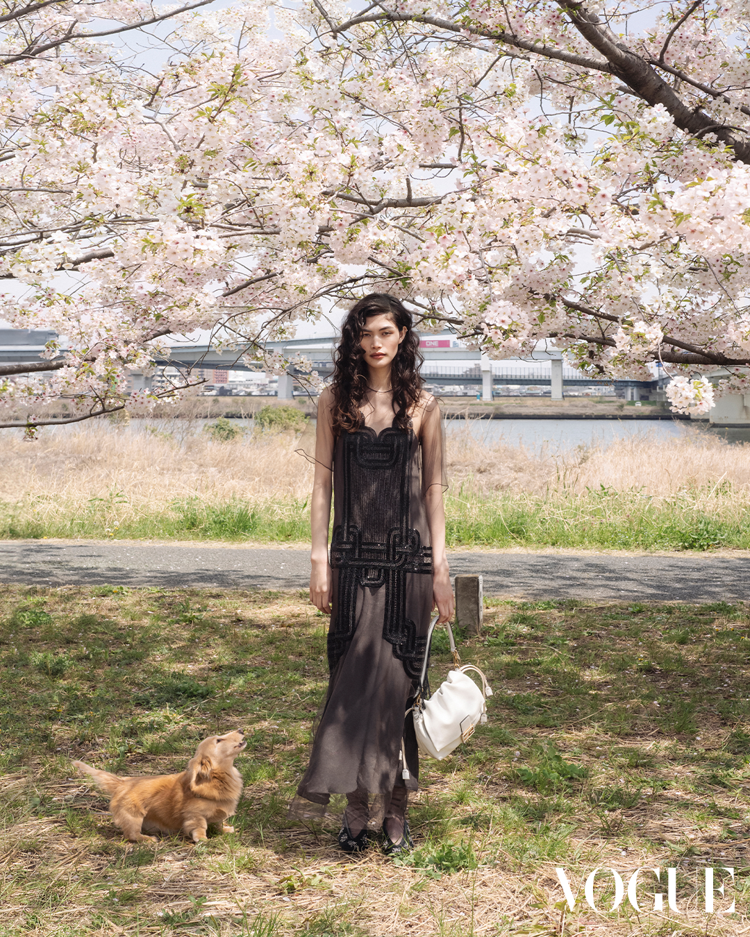 PARIS, FRANCE - MARCH 09: Morgan Stewart wears ruffled skirt with floral print, jacket, snake print bag, sunglasses, black tights, heels outside Valentino during the Womenswear Fall/Winter 2025/2026 as part of Paris Fashion Week on March 09, 2025 in Paris, France. (Photo by Christian Vierig/Getty Images)