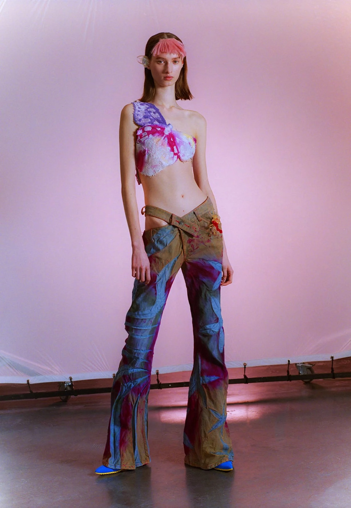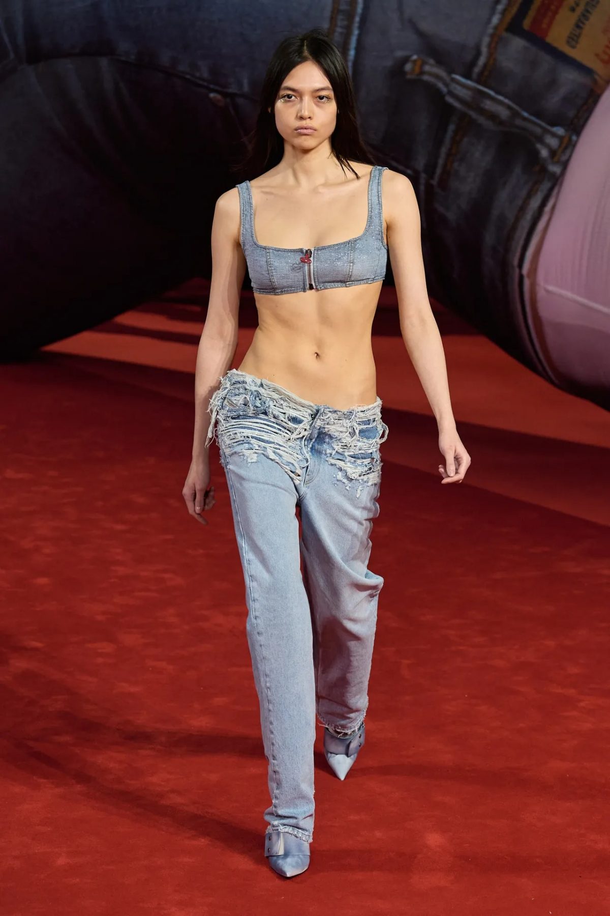 受到滑板運動熱潮影響,千禧年代曾一度流行低腰設計,像 Christina Aguilera、Destiny’s Child 等人一度穿上超低腰短裙、牛仔褲,成為一代的時尚經典造型;在 Y2K 熱潮影響,標誌性超低腰設計再次回歸,繼 Miu Miu 憑性感低腰裝席捲時尚界,各大品牌亦迎來各款低腰款式設計,像 Julia Fox 挑戰了 Diesel 超低腰牛仔褲的極限,突顯腰部纖細曲線,還原 Y2K 美學中的大膽精神。