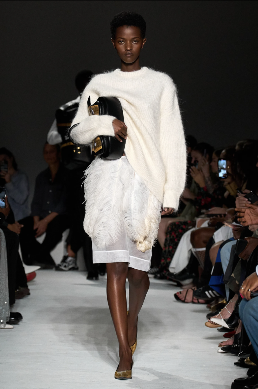 用手臂抱着手提電腦和手拿包不會對你的辦公造型產生太大影響,但由於 2024 春夏時裝展的出現,在 Ferragamo、Tod’s 和 Miu Miu 等品牌的秀場上,模特兒將寬敞的手提袋抱在肘部。這拿手袋的姿勢已經成為一種日常理想的造型,表示手袋不是造型上的重點,而是你如何拿着它。