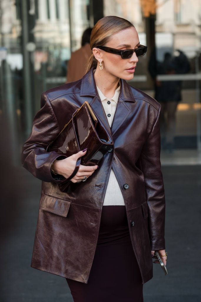 用手臂抱着手提電腦和手拿包不會對你的辦公造型產生太大影響,但由於 2024 春夏時裝展的出現,在 Ferragamo、Tod’s 和 Miu Miu 等品牌的秀場上,模特兒將寬敞的手提袋抱在肘部。這拿手袋的姿勢已經成為一種日常理想的造型,表示手袋不是造型上的重點,而是你如何拿着它。